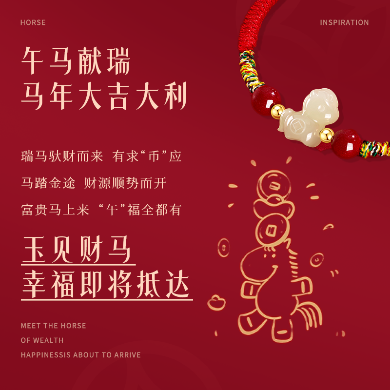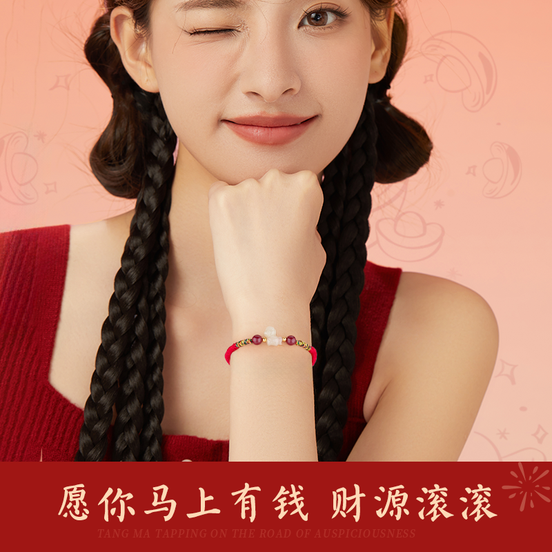 中国黄金央创马年本命年红手绳手链红色本命年女士礼物红绳S925