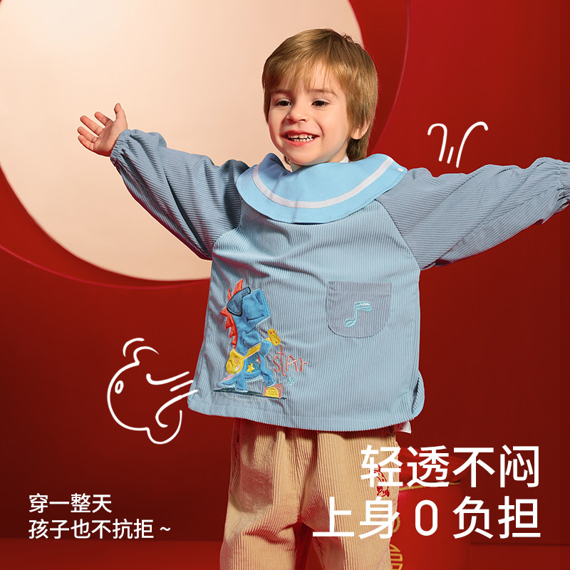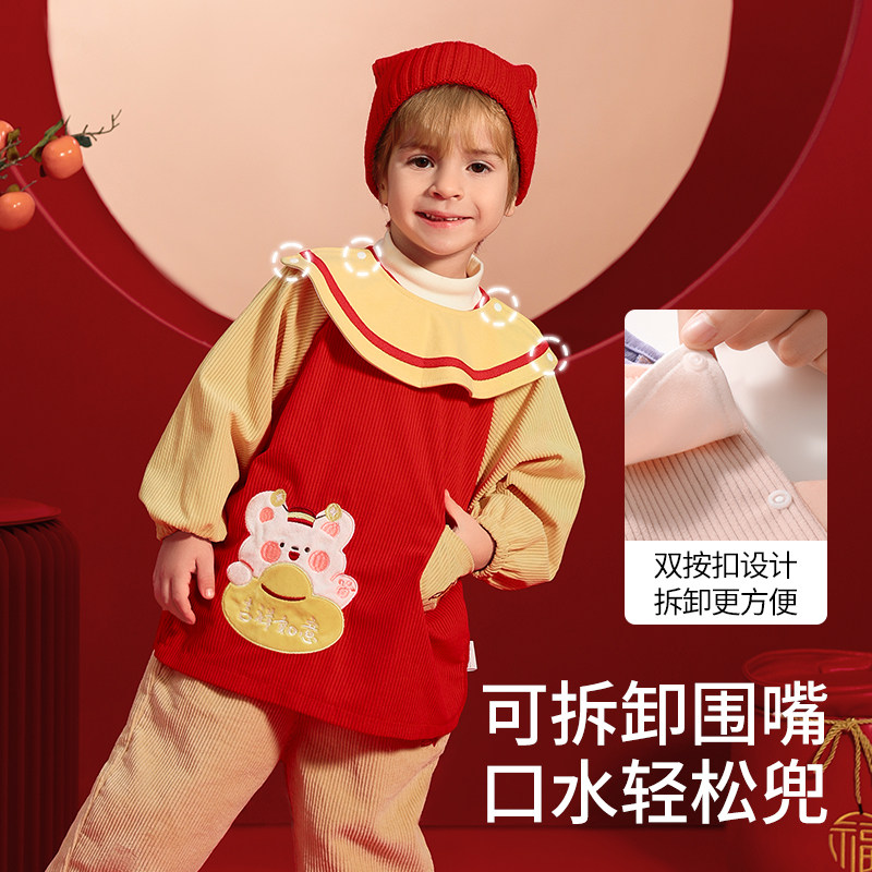 贝肽斯儿童罩衣灯芯绒冬天外穿男女宝宝吃饭防水防脏围兜反穿衣