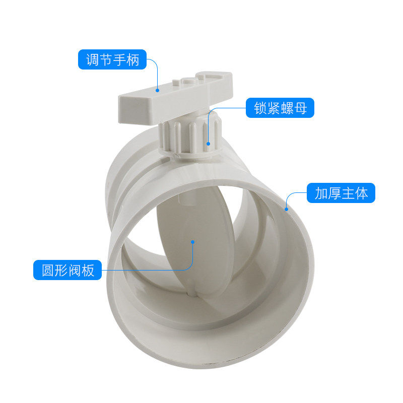 PVC管道风量调节阀风管蝶阀手动风阀圆形开关75110/160/200水管