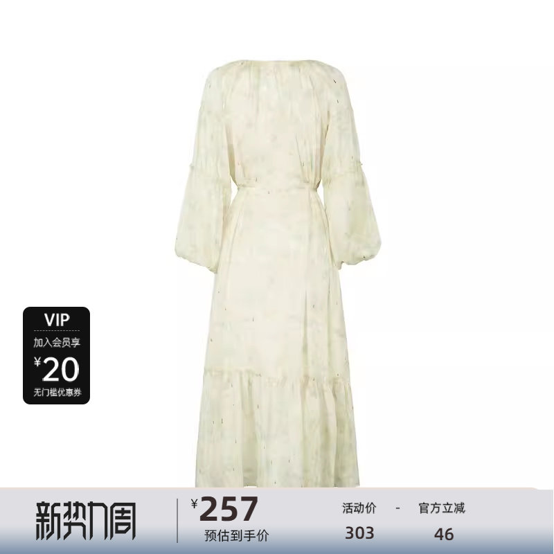 sdeer圣迪奥女装秋田园风碎花收腰网纱两件套连衣裙S243Z1209