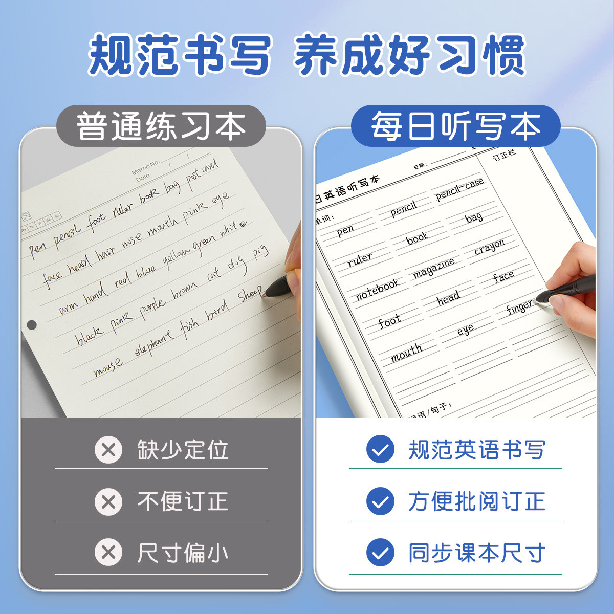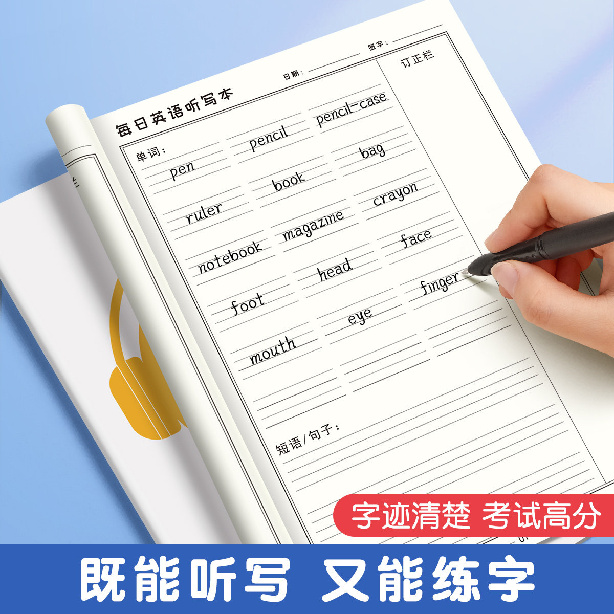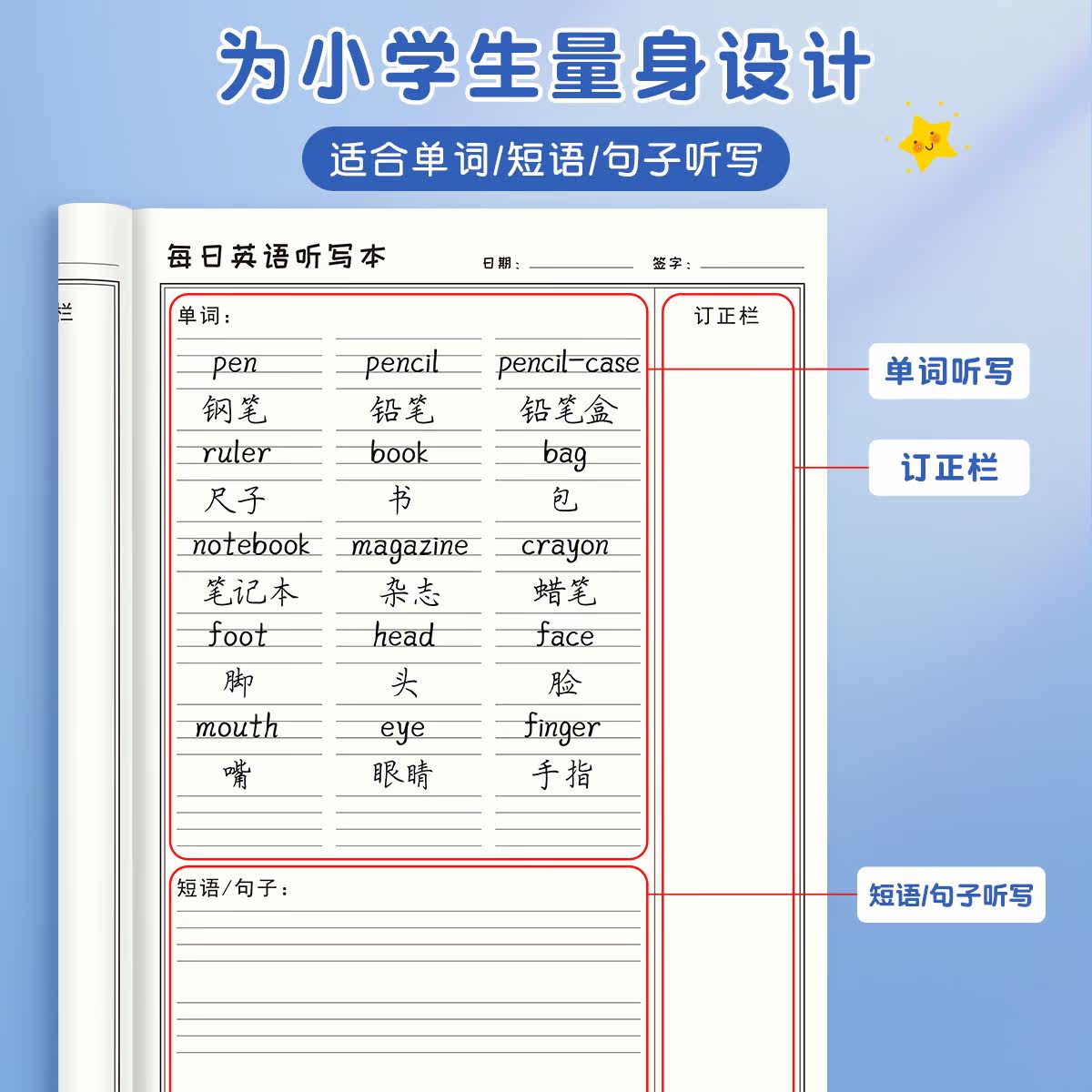 小学生英语每日听写默写本一年级二年级下册三四上册小学生专用单词作业本语文拼音错题本练习词语班级团购