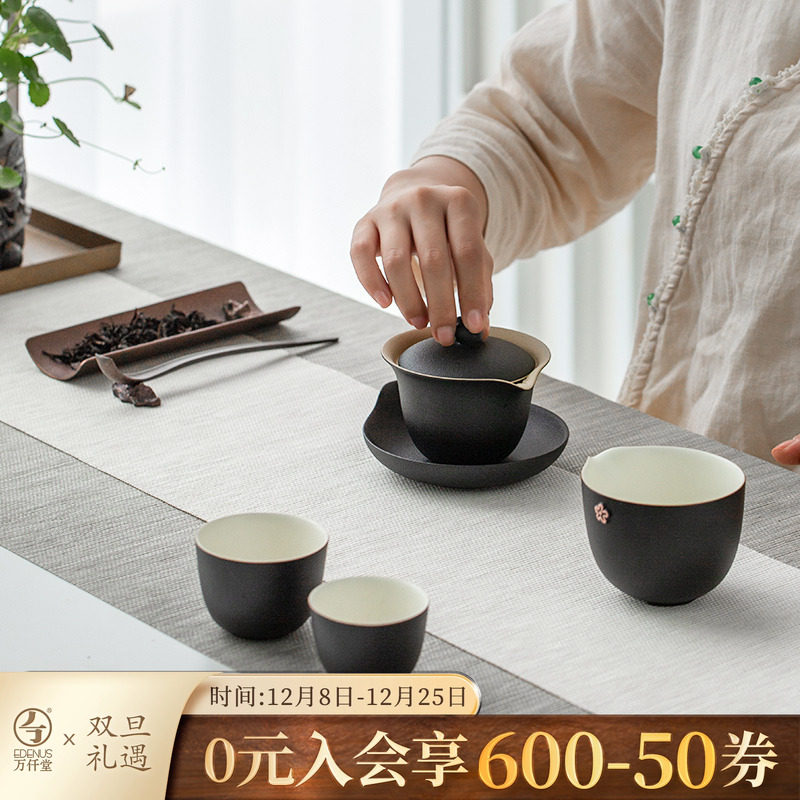万仟堂陶瓷快客杯一壶二茶杯子功夫茶具家用便携茶具套装心心相印