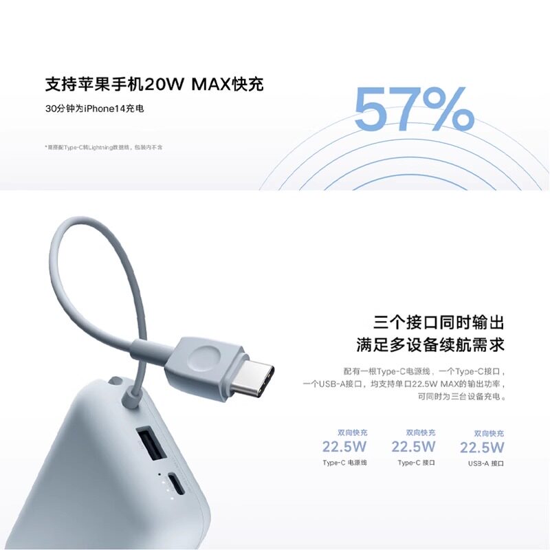 口袋版小巧便携type-c双向快充可上飞机