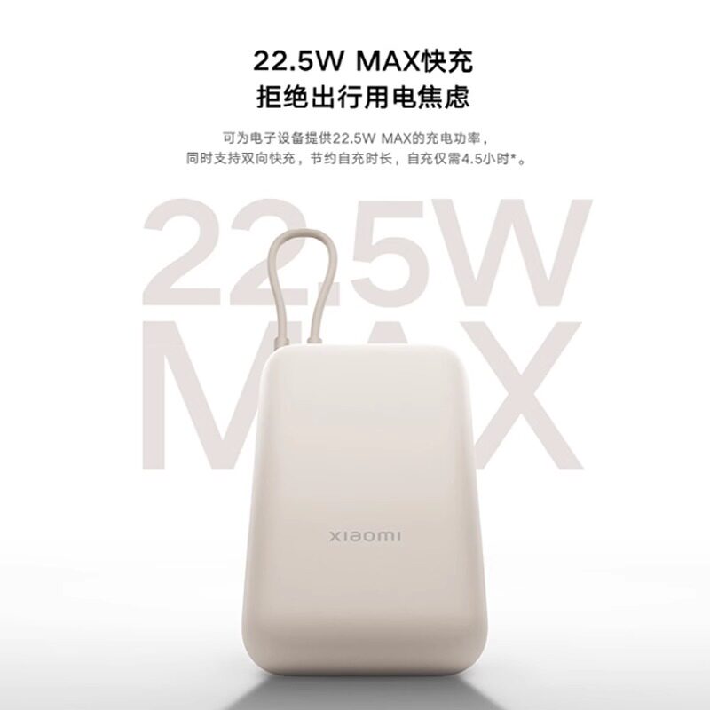 【3C认证】小米磁吸自带线充电宝10000 33W快充超薄迷你超大容量便携移动电源适用于华为小米苹果可上飞机