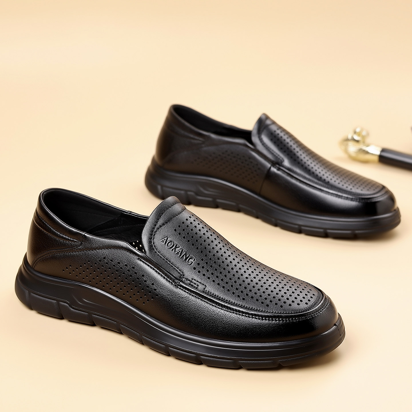 奥康 男鞋2026夏季男士真皮休闲镂空透气洞洞皮鞋头层牛皮爸爸鞋H