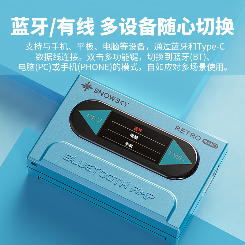 磁带造型 可拆卸更换电池 蓝牙/有线双模