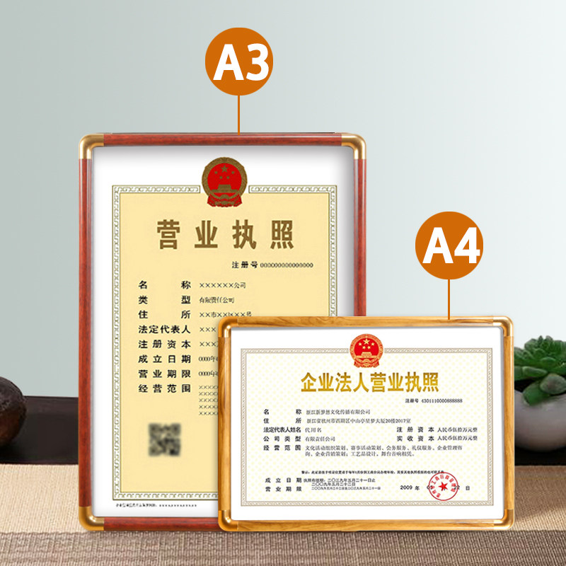 个体工商营业执照框架正副本挂墙卫生许可证a3a4三合一证书相框