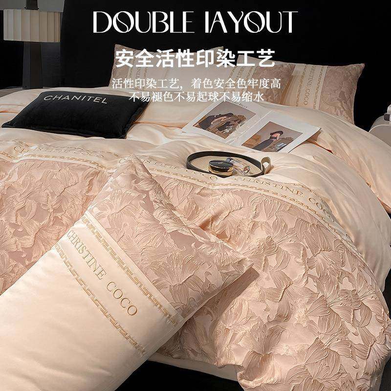 夏季冰丝提花床上四件套2025新款凉感床单被套罩轻奢高级床品