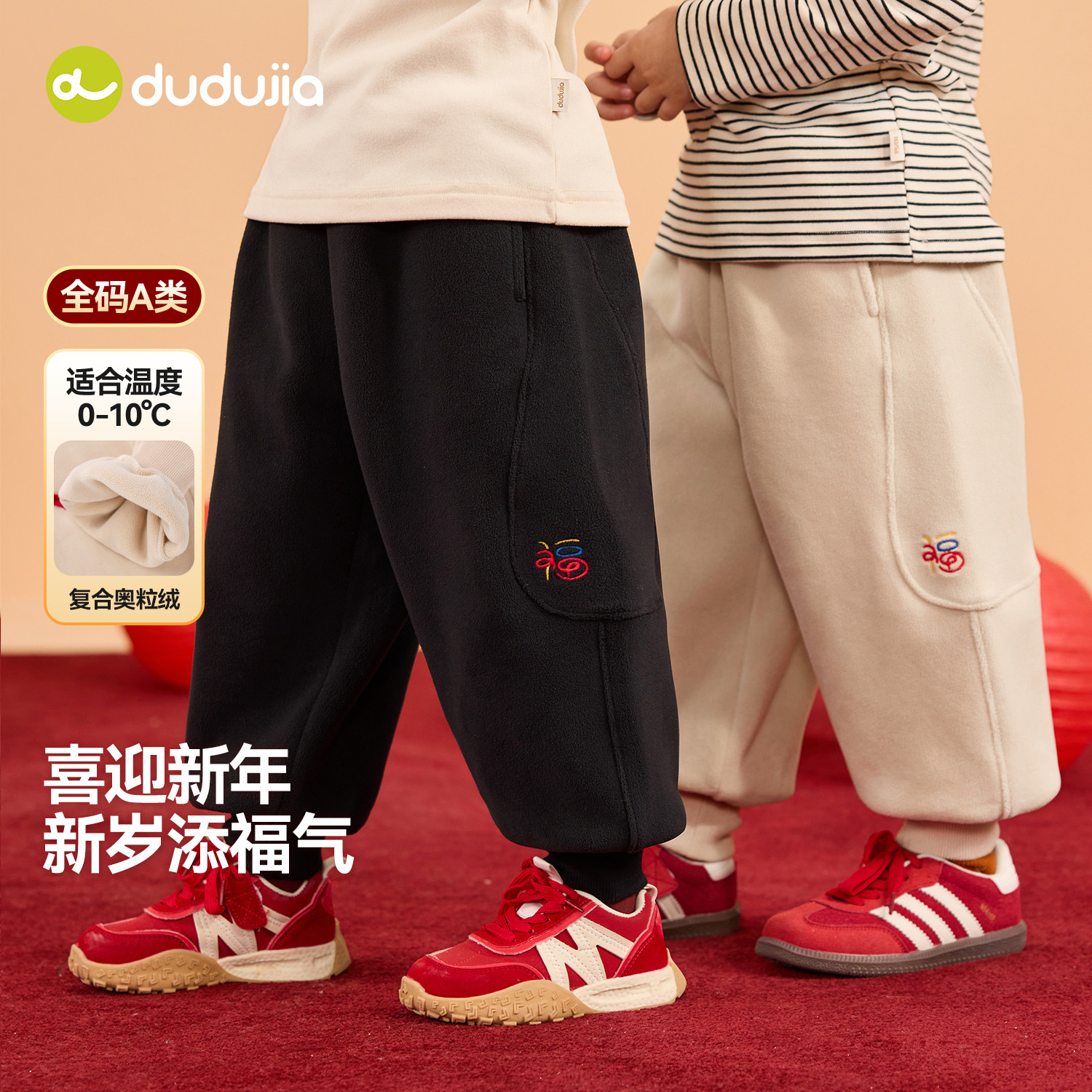 嘟嘟家男童拜年服宝宝过年红色裤子冬季儿童唐装喜庆新年女童加绒