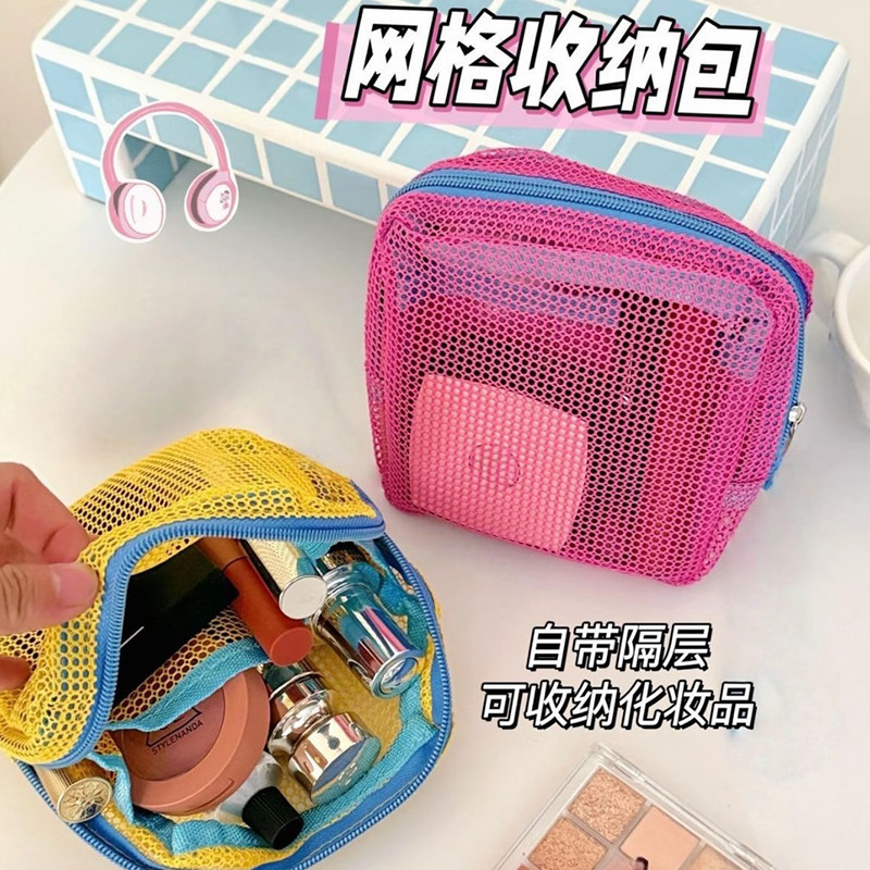 多巴胺豆腐包迷你网纱便携旅行洗漱化妆品收纳包补妆包网格杂物包