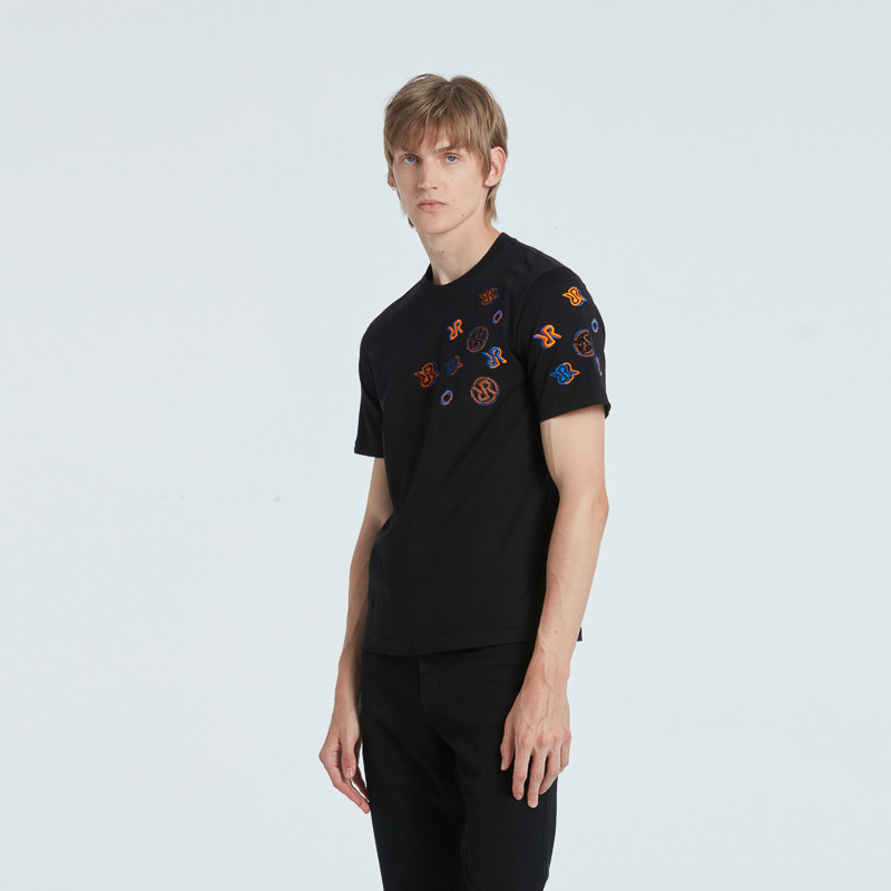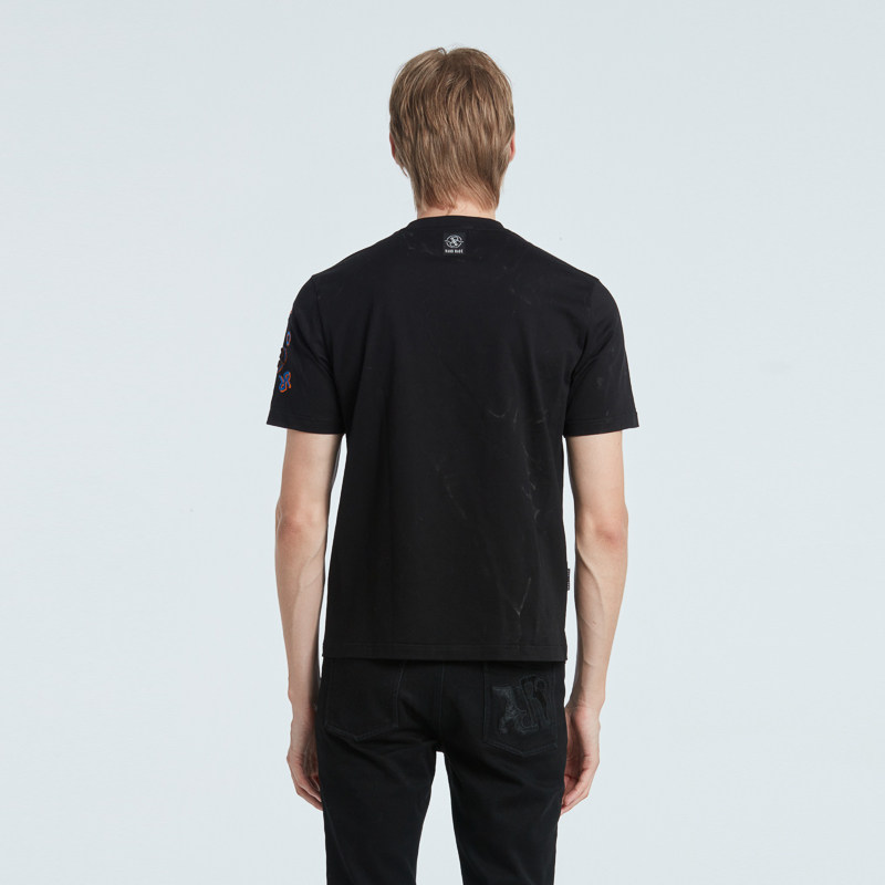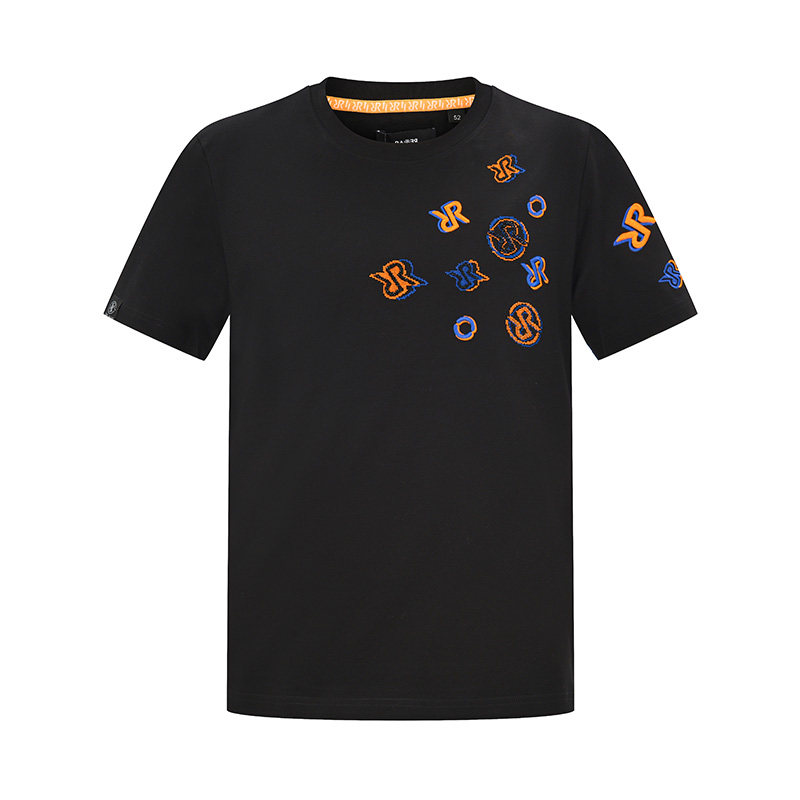 RARE威雅男装 秋冬新款精致logo绣花黑色休闲圆领男士短袖T恤