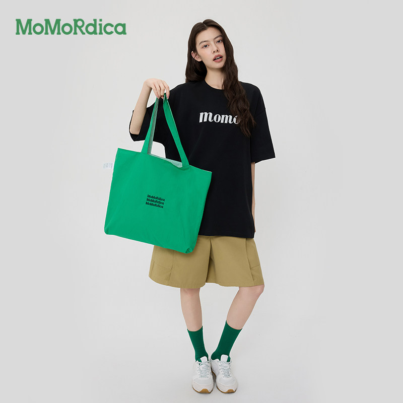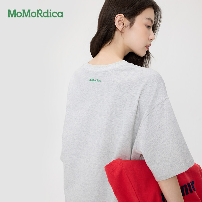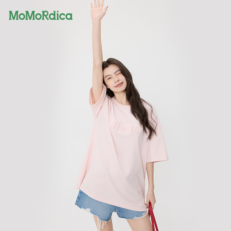 Momordica 夏季纯棉T恤圆领短袖通勤休闲百搭宽松薄款黑色上衣女