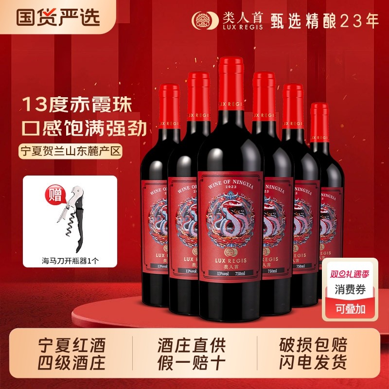 类人首 宁夏红酒 灵蛇橡木桶生肖干红葡萄酒750ml*6送礼整箱