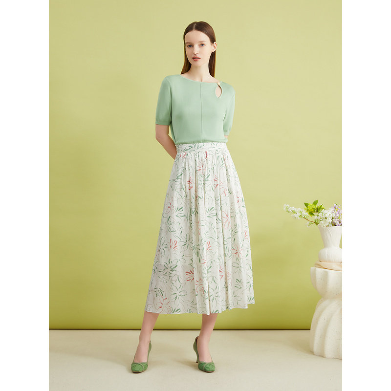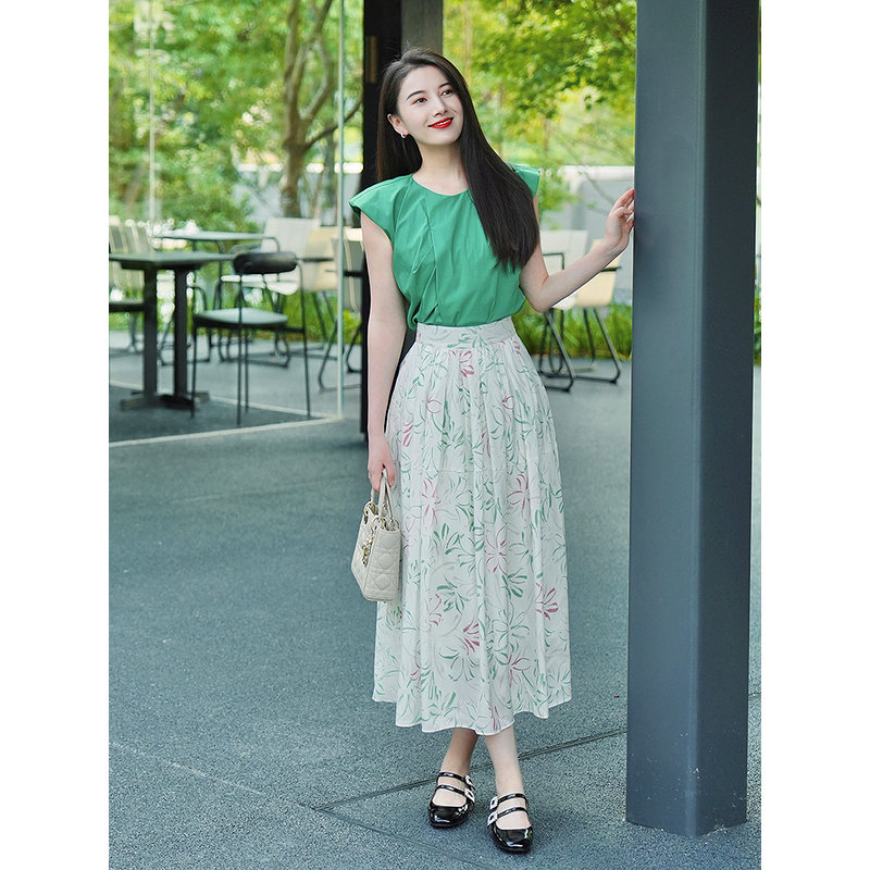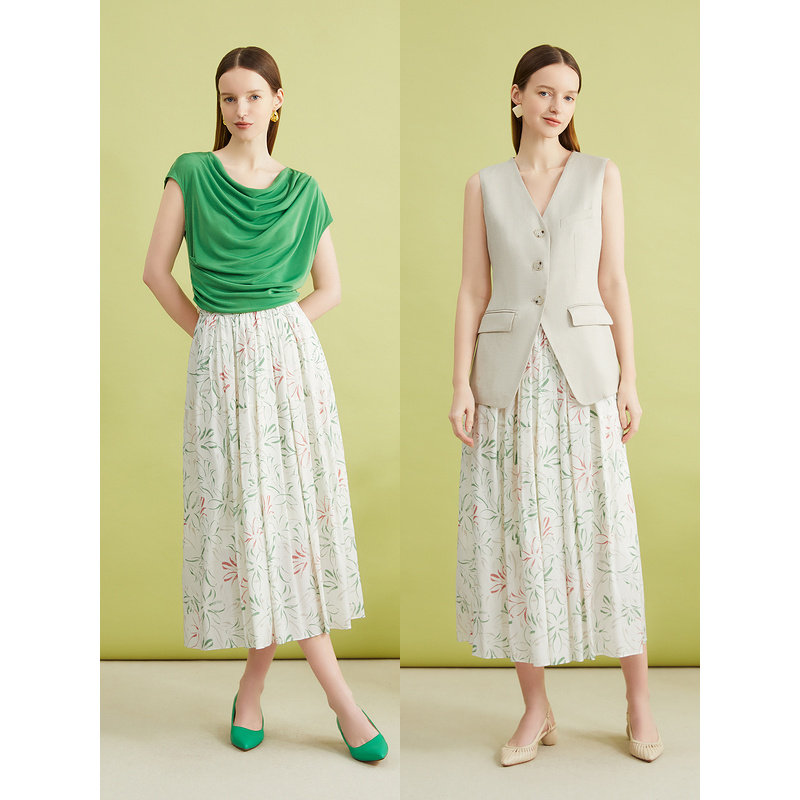 【博主同款】YINER音儿夏季真丝斜纹绸印花法式优雅半身裙
