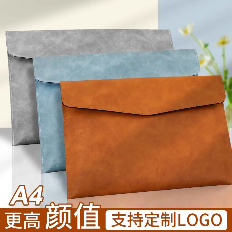 皮质文件袋定制logo男士大容量按扣女便携电脑包票据收纳册商务办公用品档案袋合同公文包多层A4防水资料袋