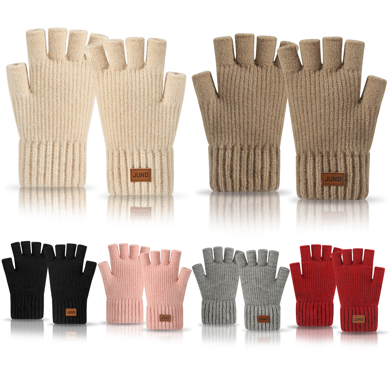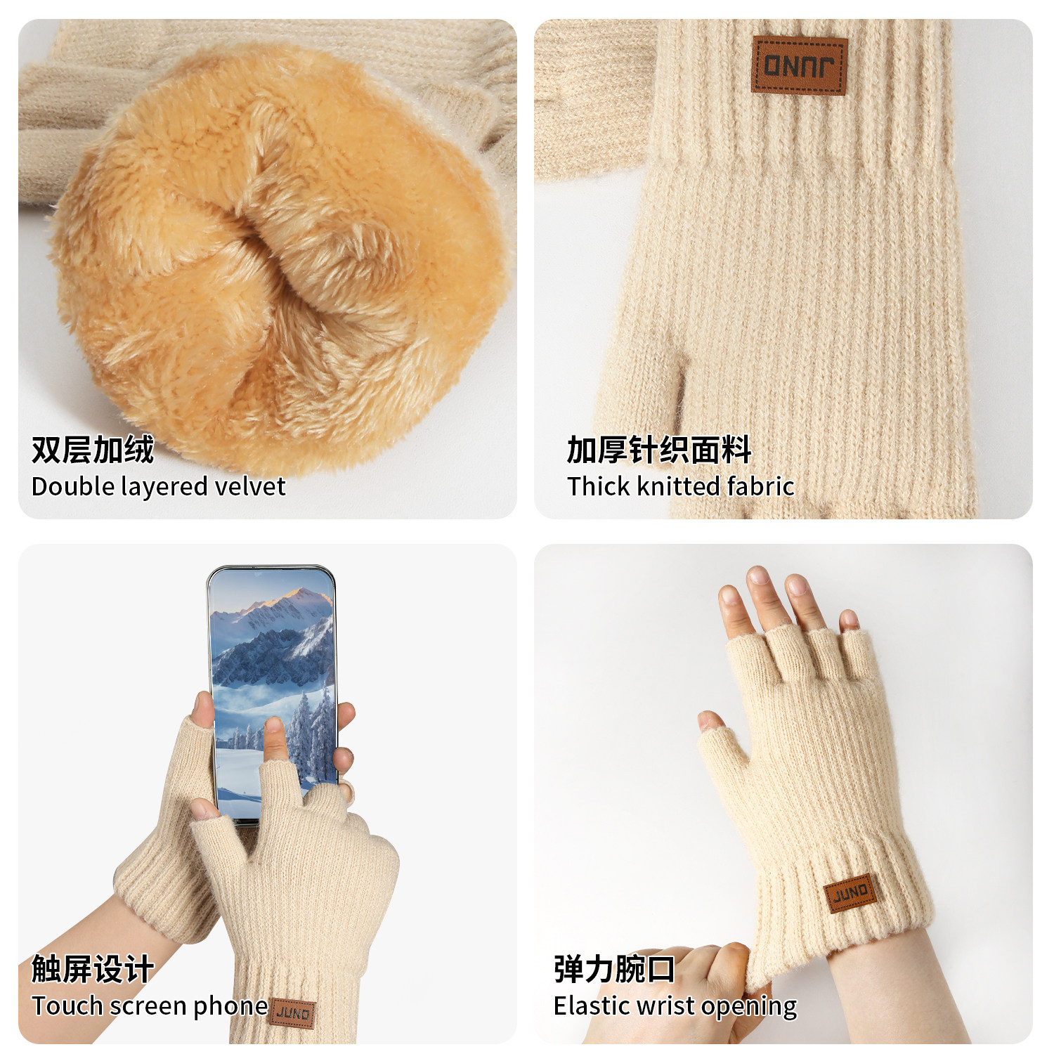 半指手套男女冬季加绒加厚保暖学生毛线针织防寒滑雪骑车双层触屏