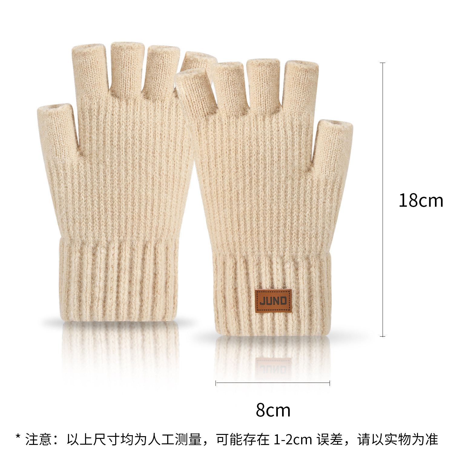 露二指骑行手套保暖冬季触屏韩版毛绒防寒漏指骑车办公写字神器