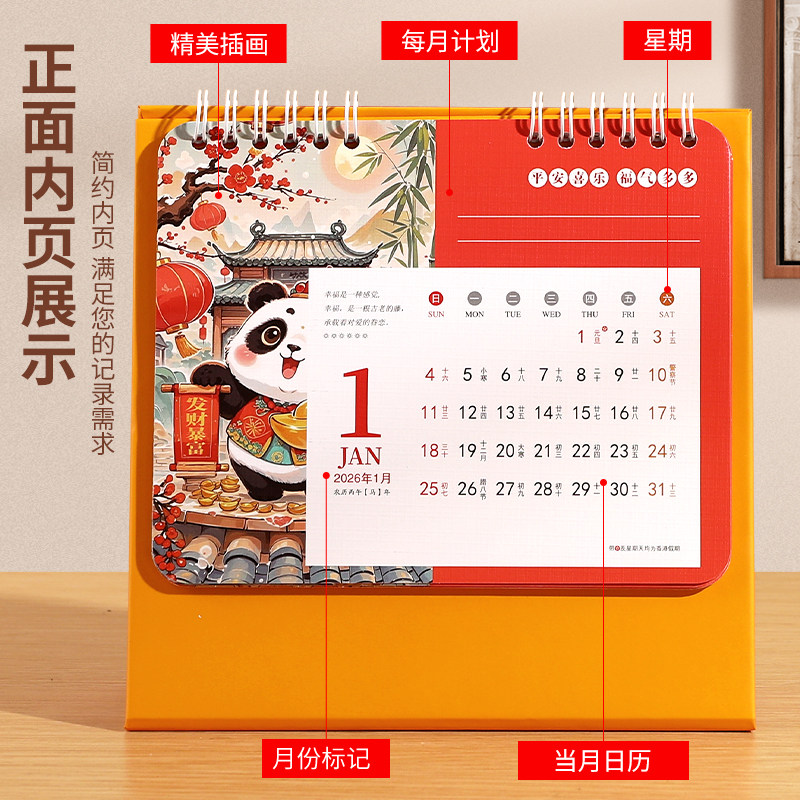台历2026年新款日历定制logo创意简约小清新韩式办公年历个性中国风桌面摆件商务工作记事计划本订制广告月历