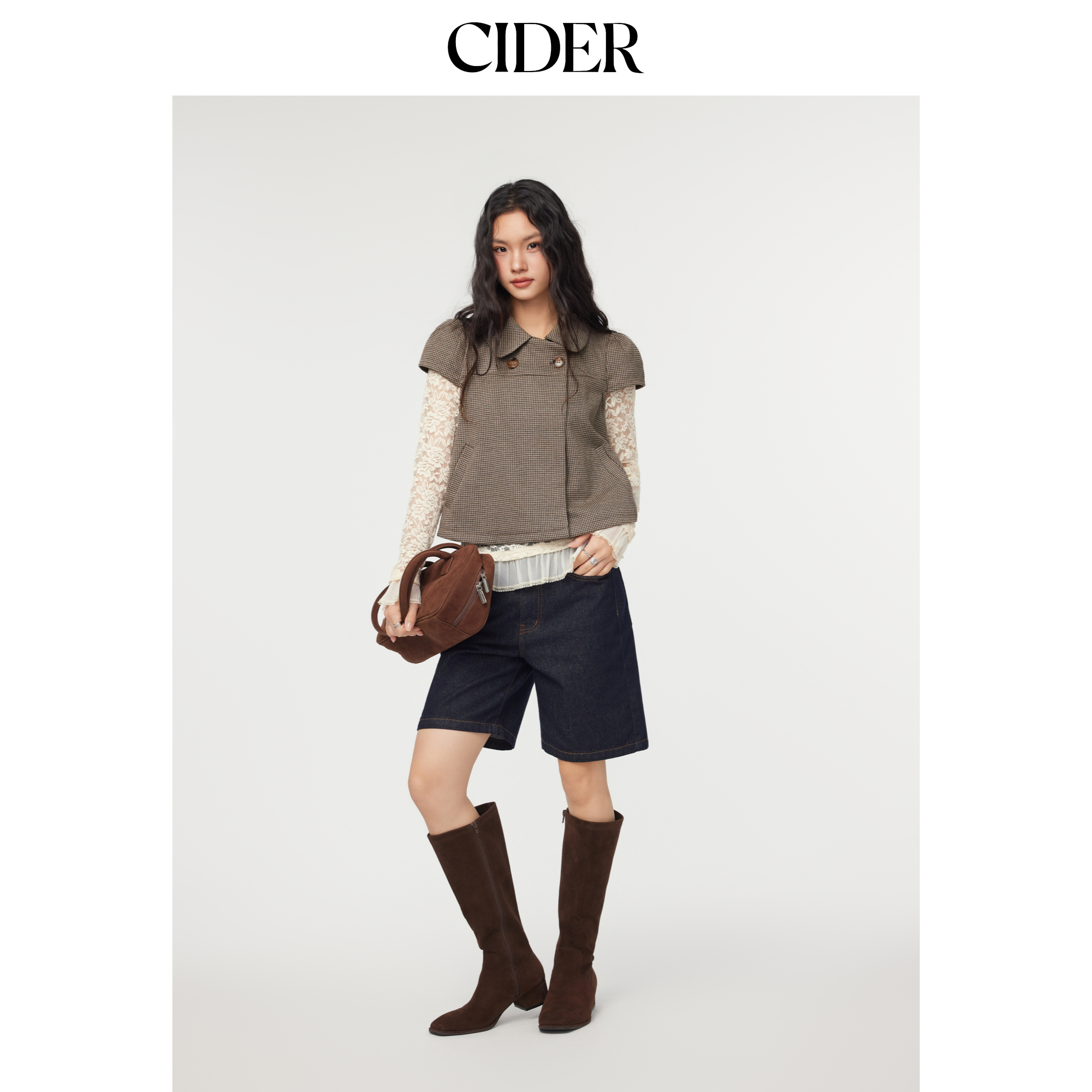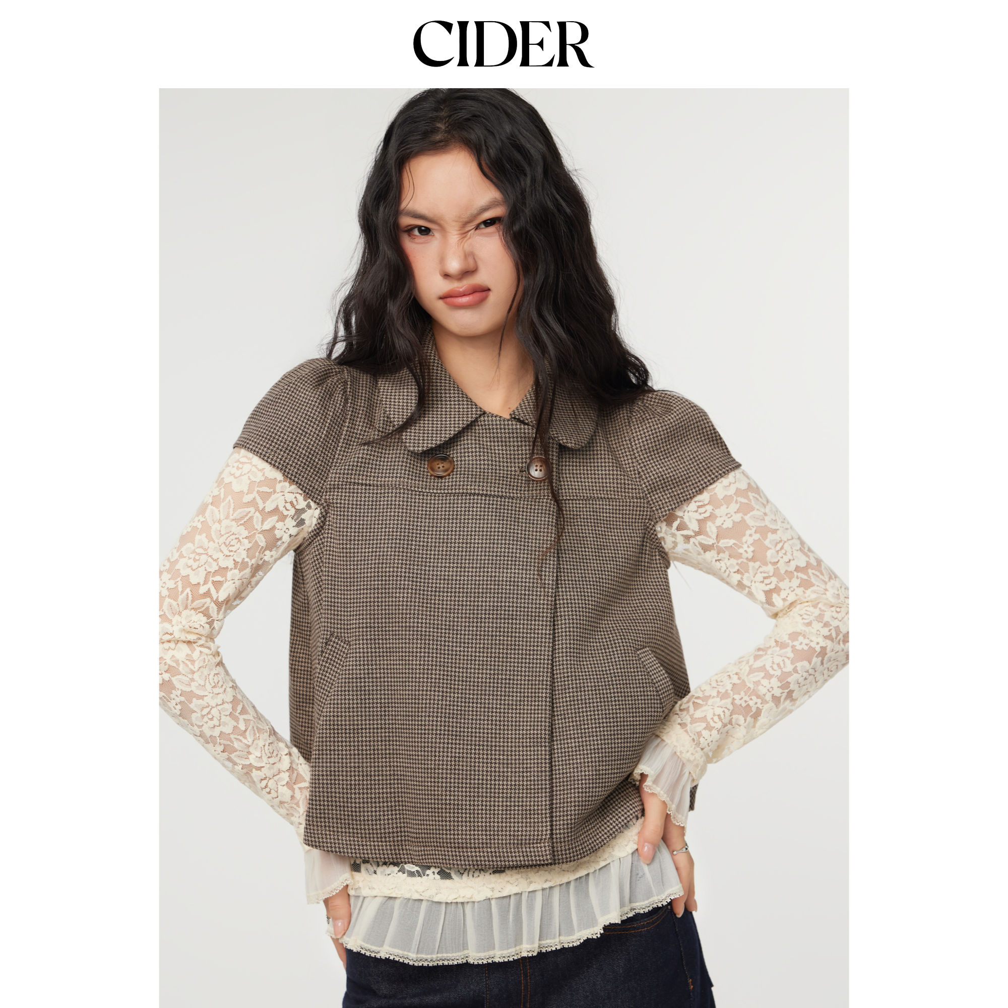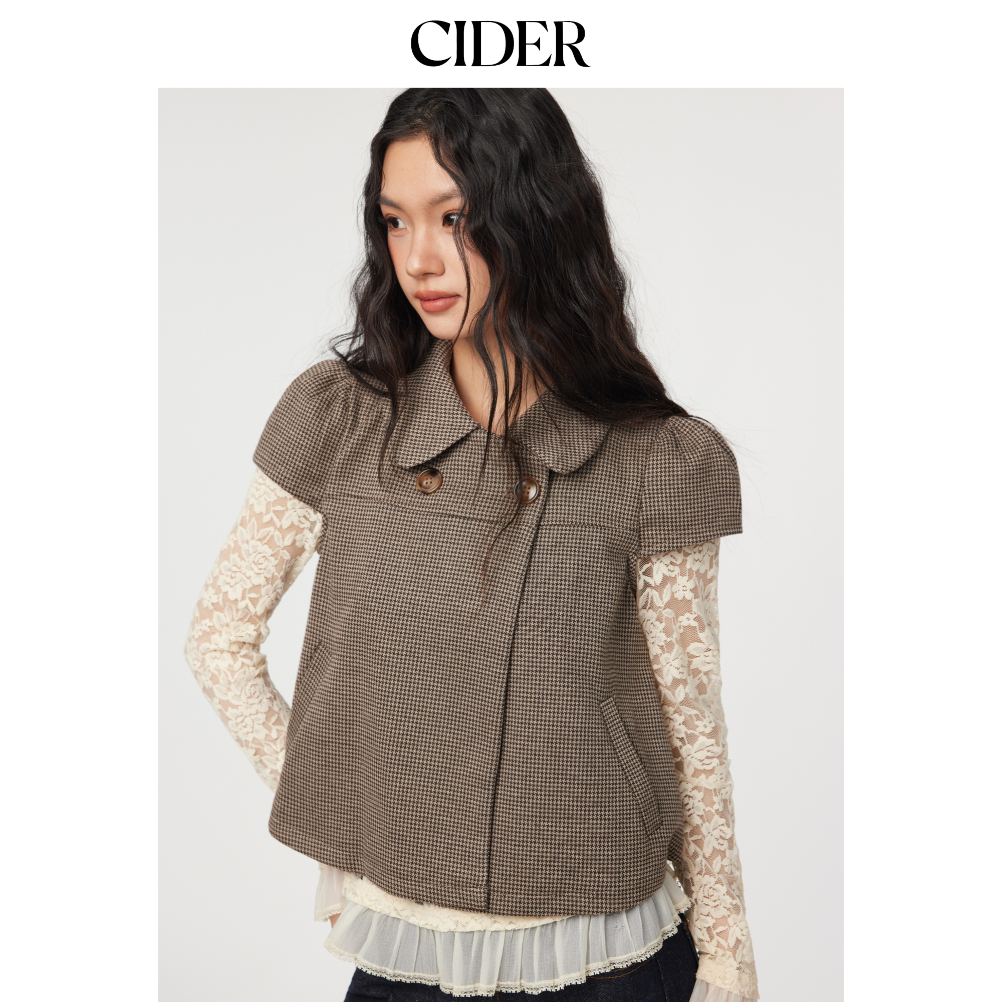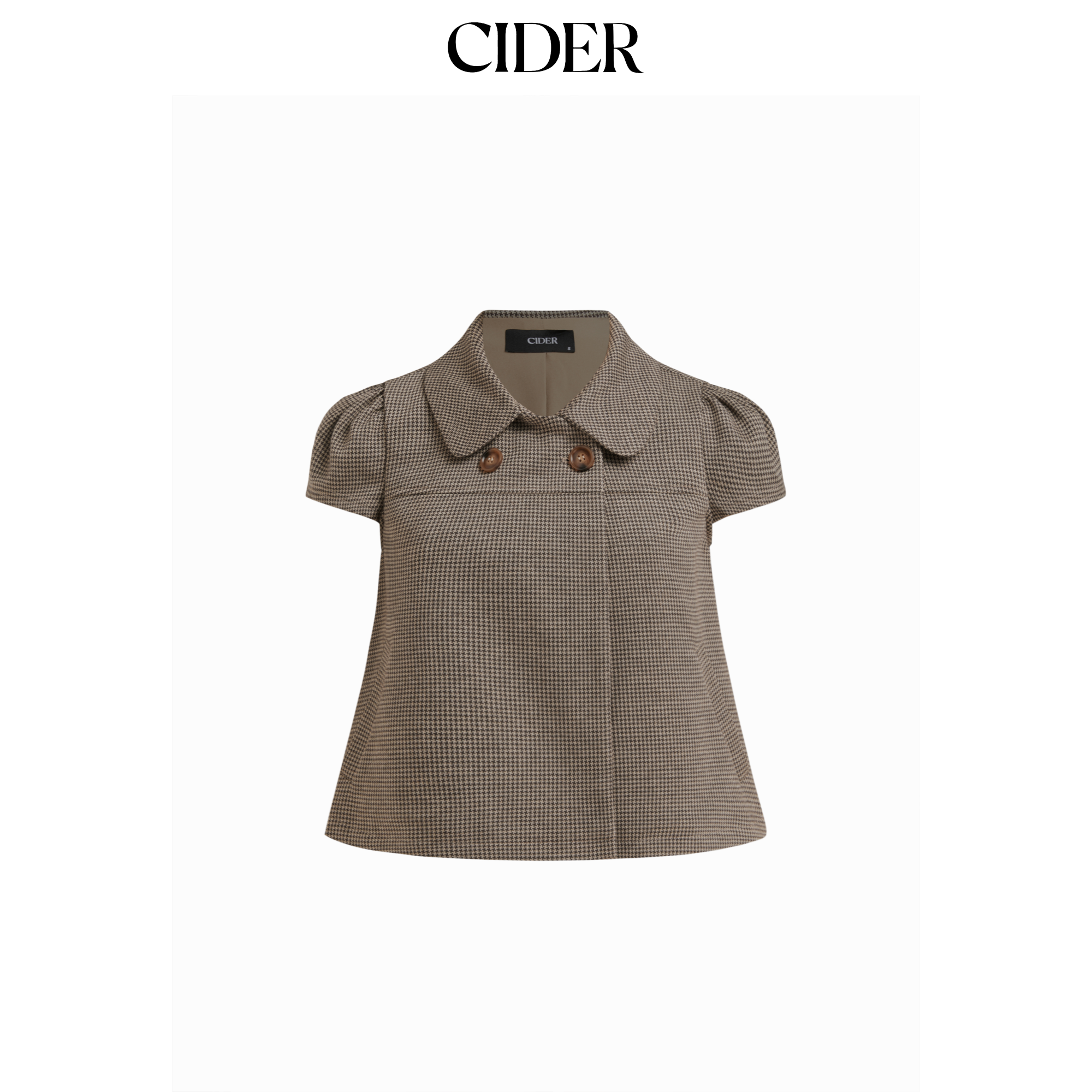 CIDER彼得潘领外套格子衬衫复古翻领格纹休闲短袖上衣114740919