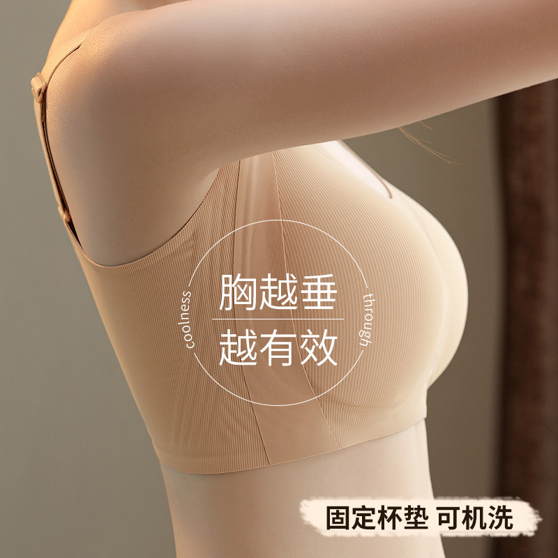 无痕内衣女小胸聚拢夏季薄款运动一体美背心式固定杯无钢圈文胸罩