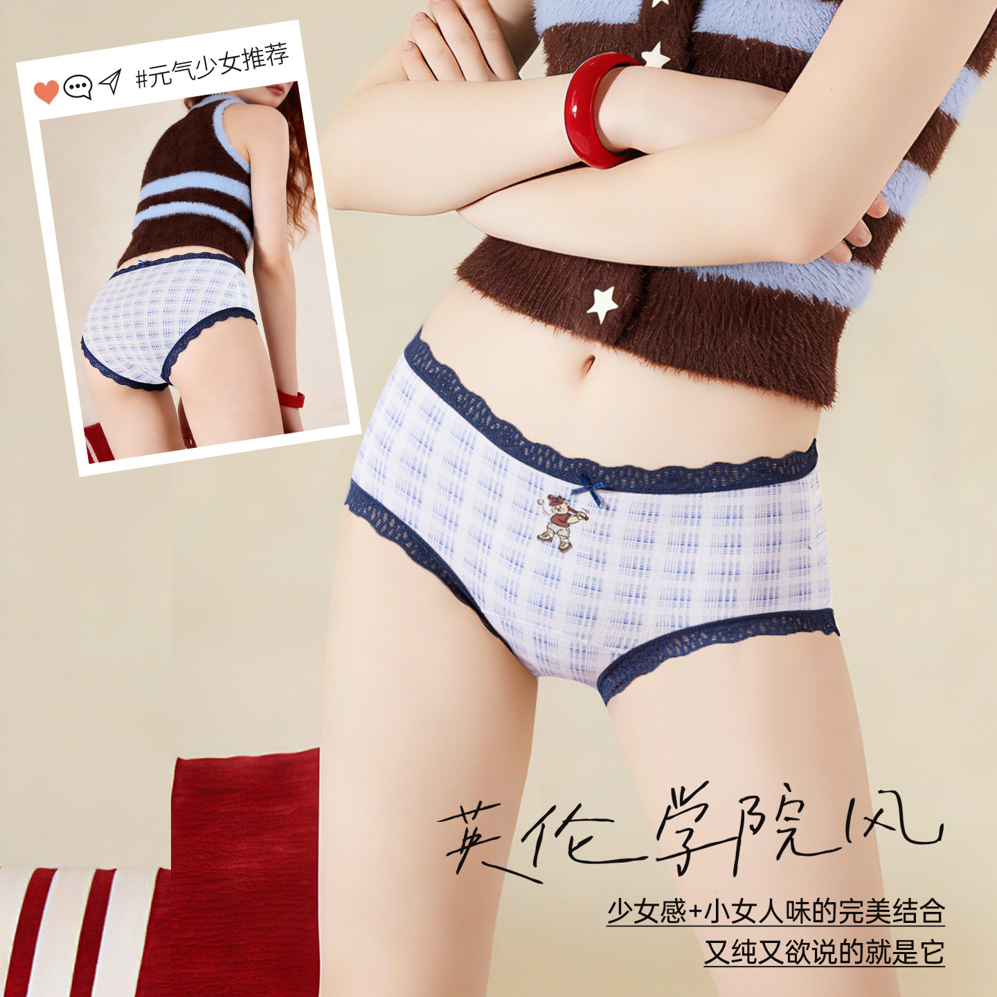 都市丽人纯棉内裤女士全棉抗菌档学生初高中生少女中腰透气三角裤