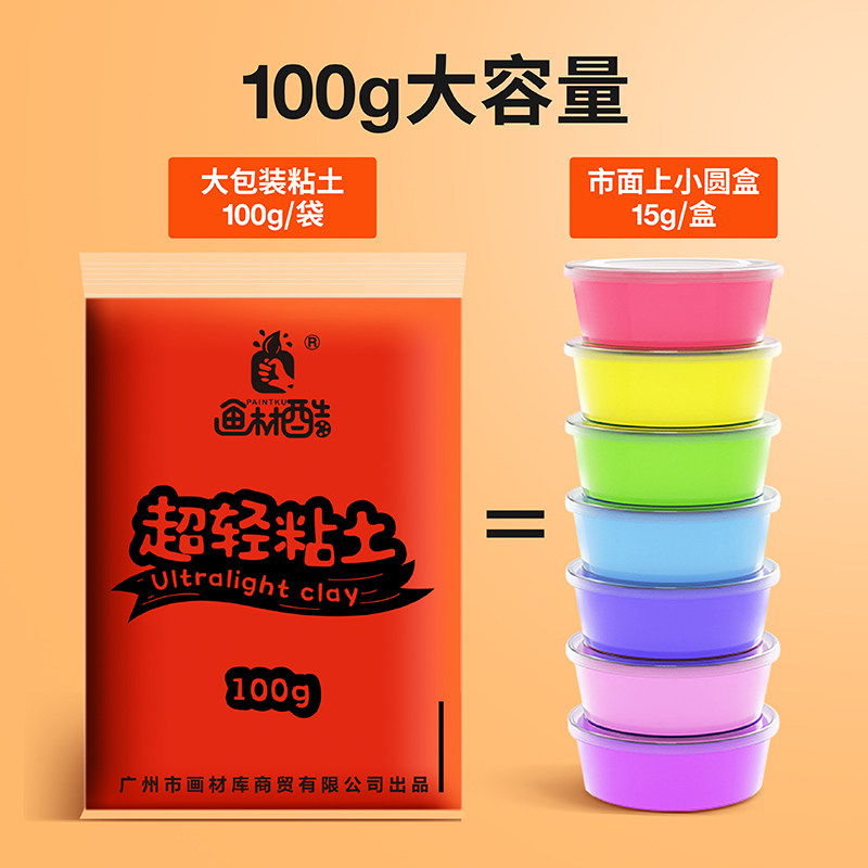 画材酷100克超轻粘土儿童24色12色套装自选色袋袋装太空泥彩泥大包装男孩女孩套装玩具幼儿园diy手工材料