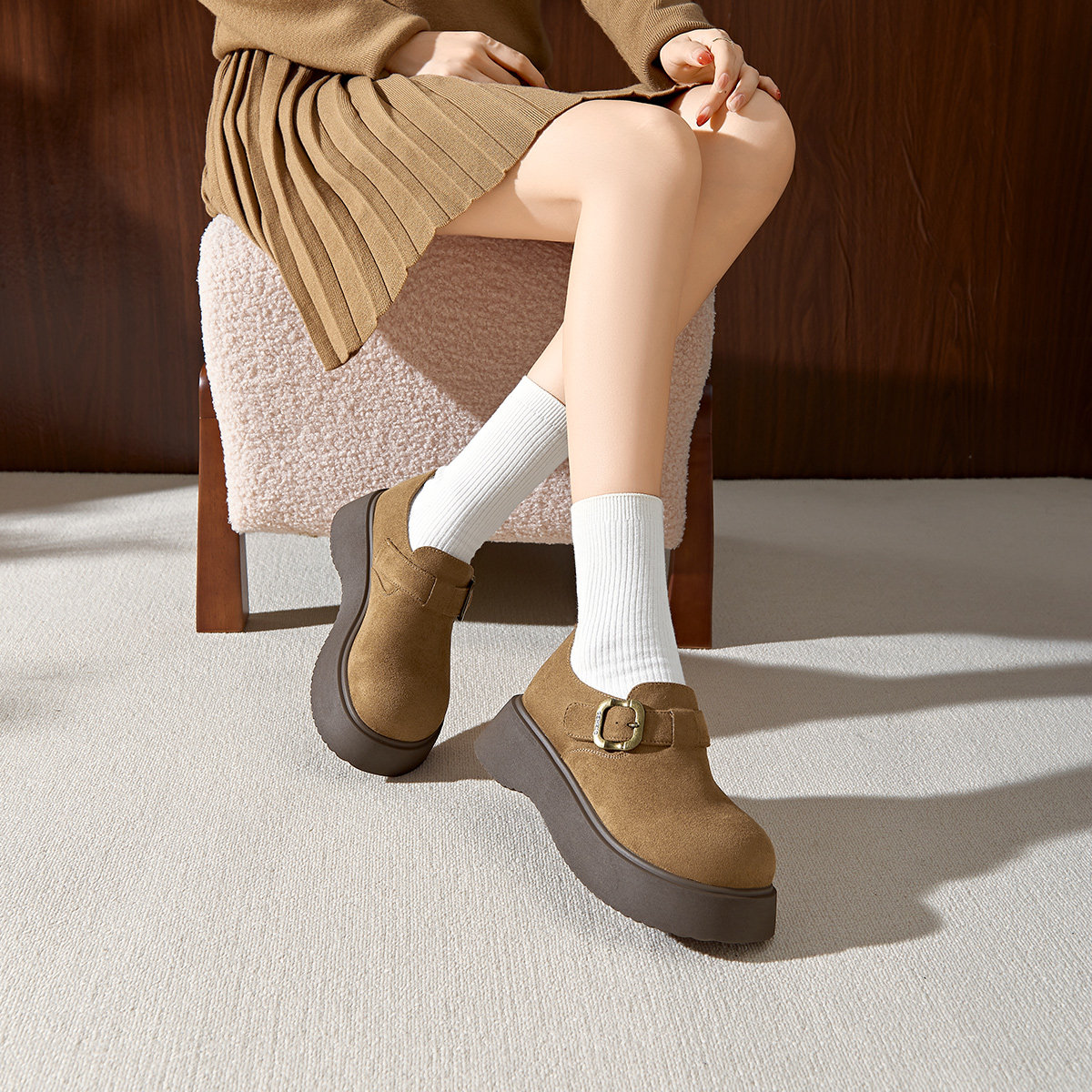 戈美其厚底勃肯鞋女2025秋冬季新款小个子短靴大头德比乐福鞋单鞋