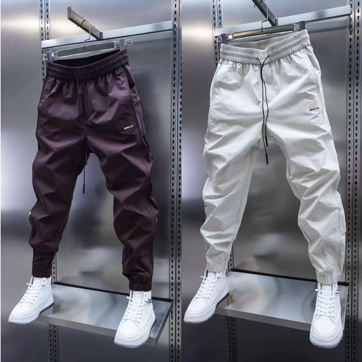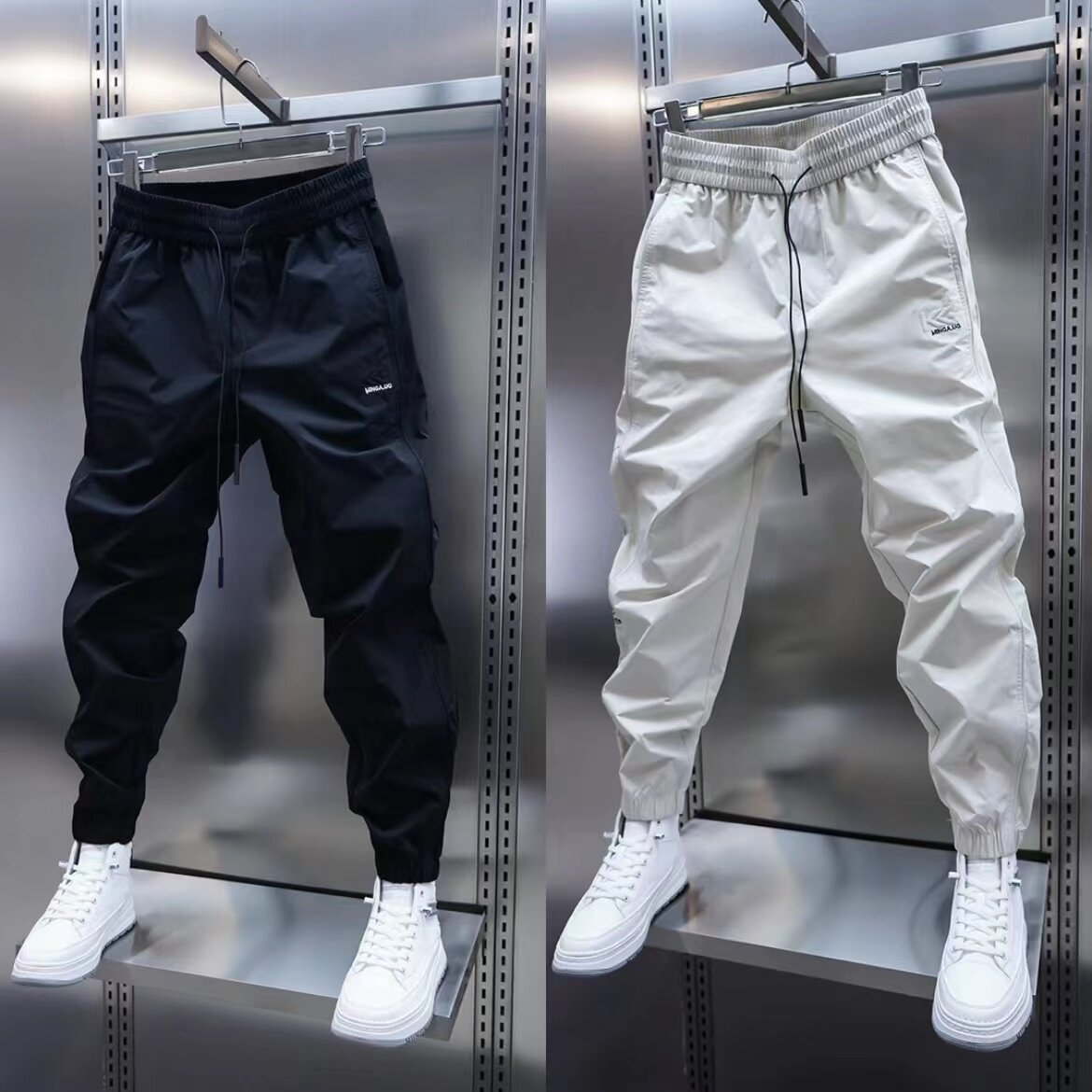 2026春夏新款纯色休闲裤拼接弹力束脚裤潮男韩版薄款修身小脚长裤