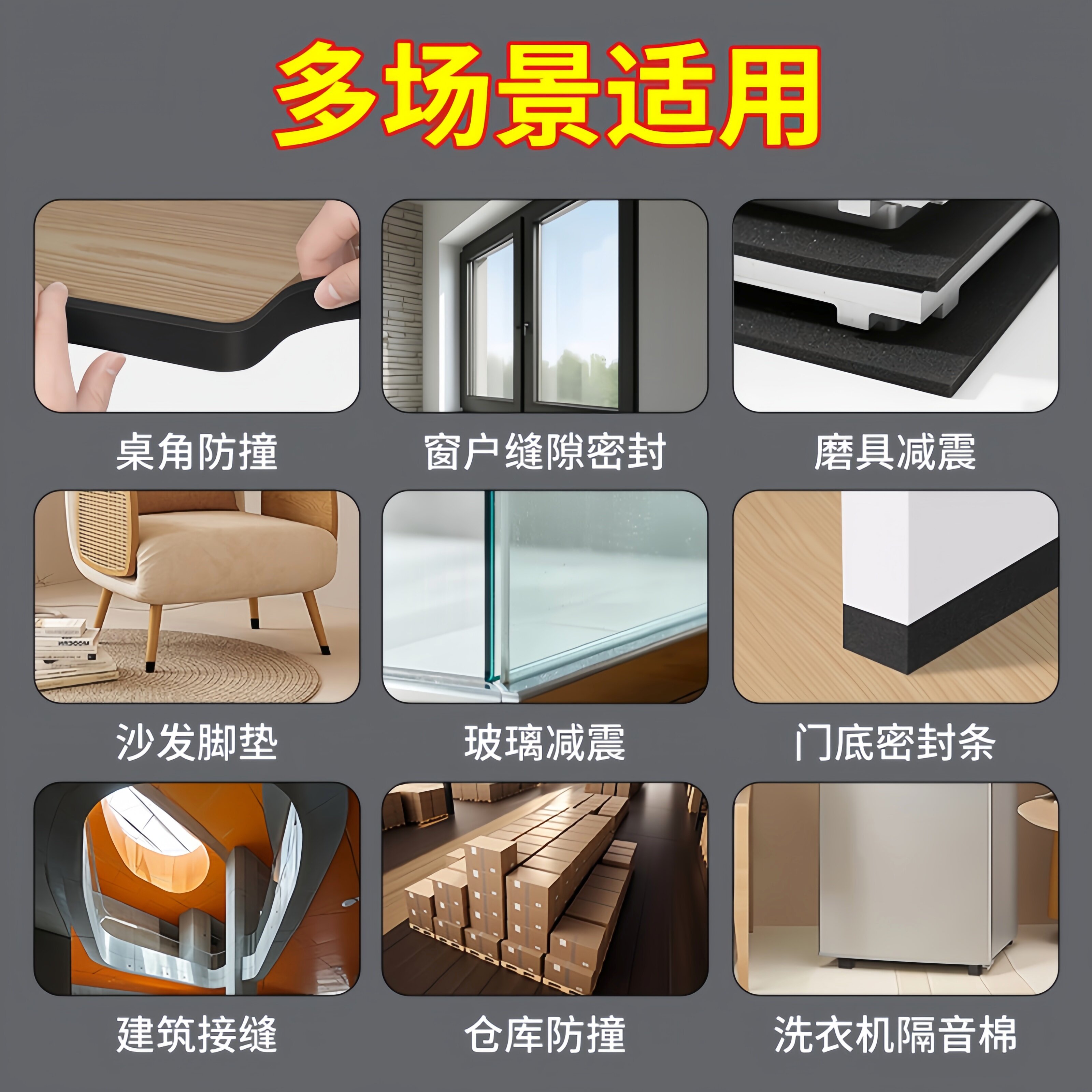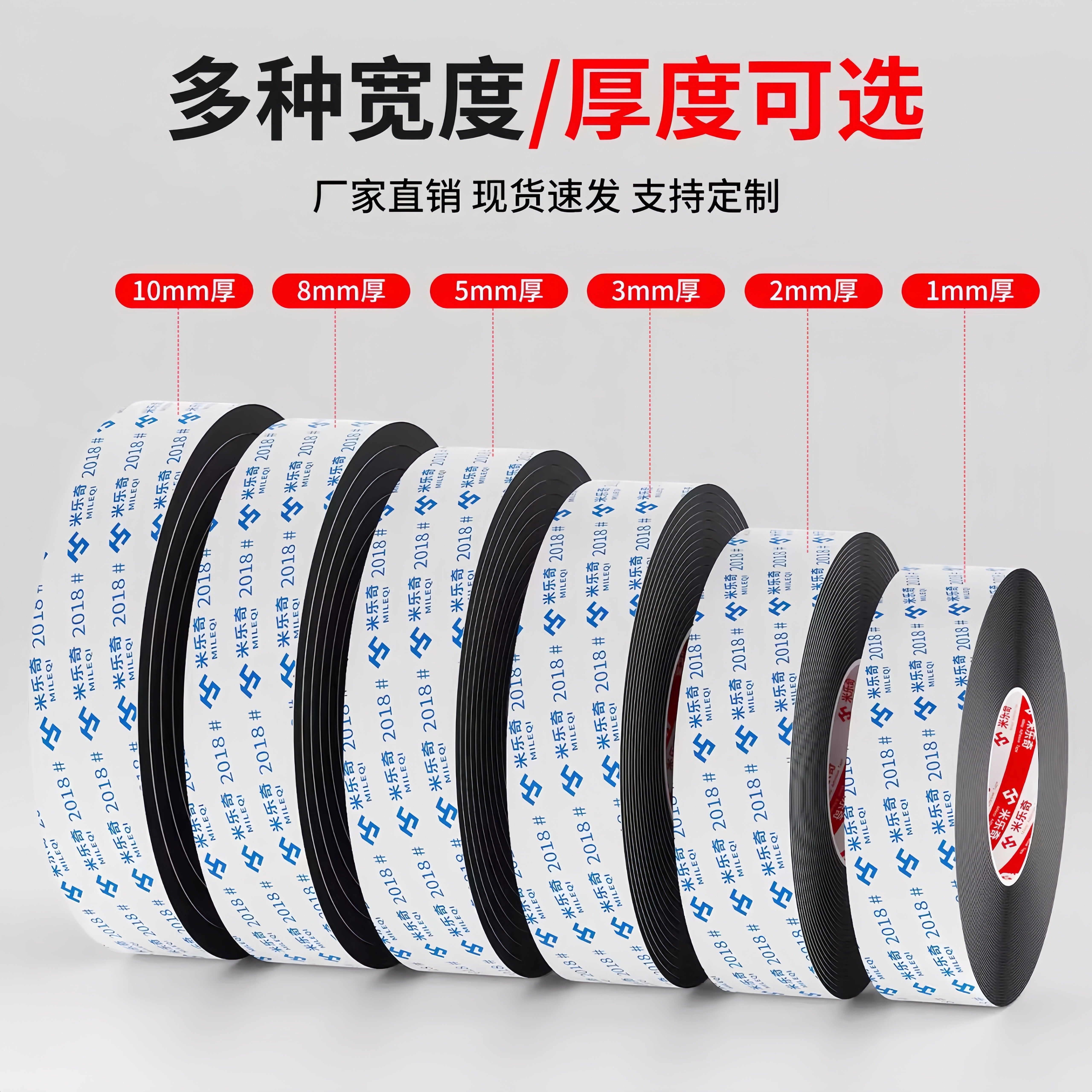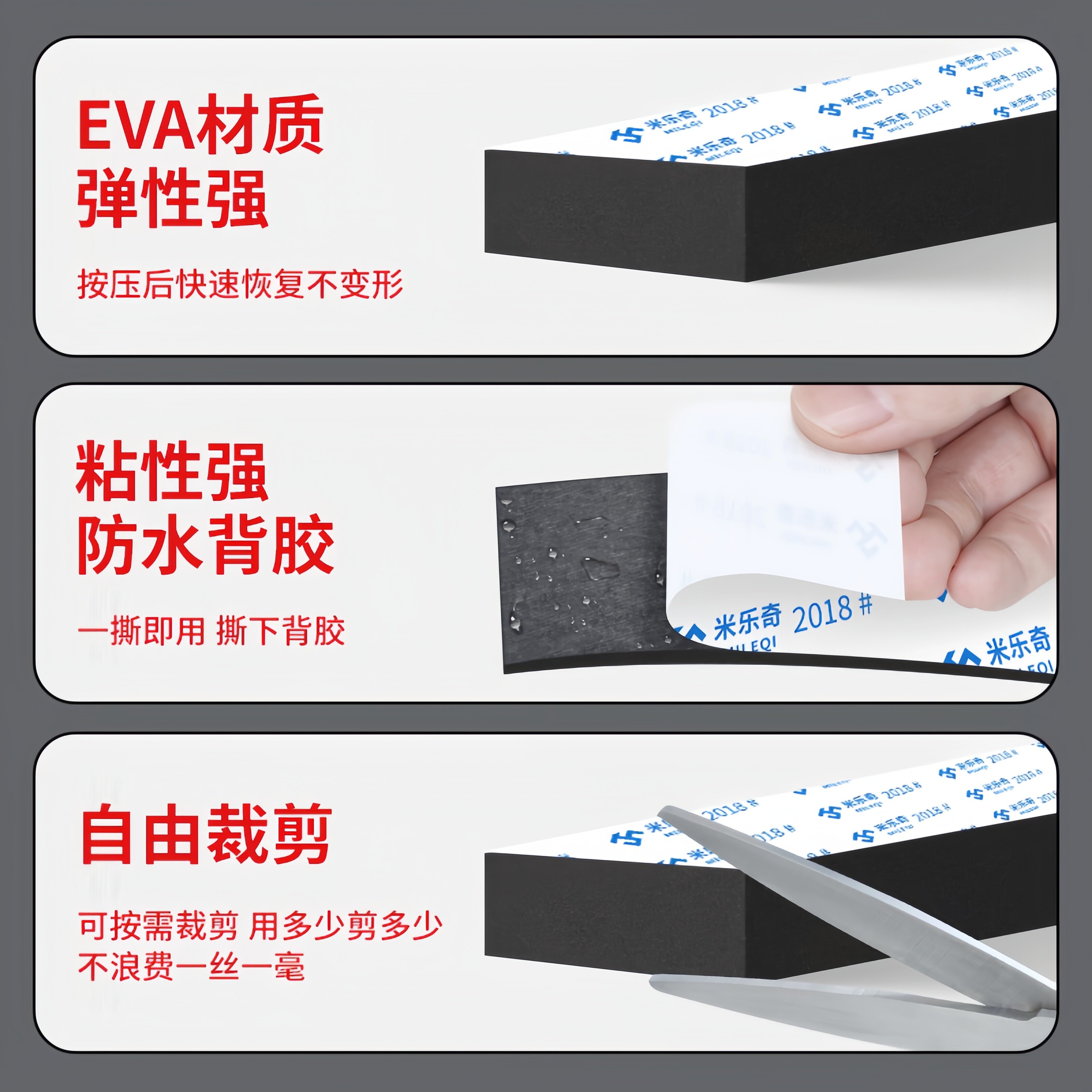 38度黑色EVA泡棉材料加厚高粘海绵单面胶带密封条高密度防水防潮