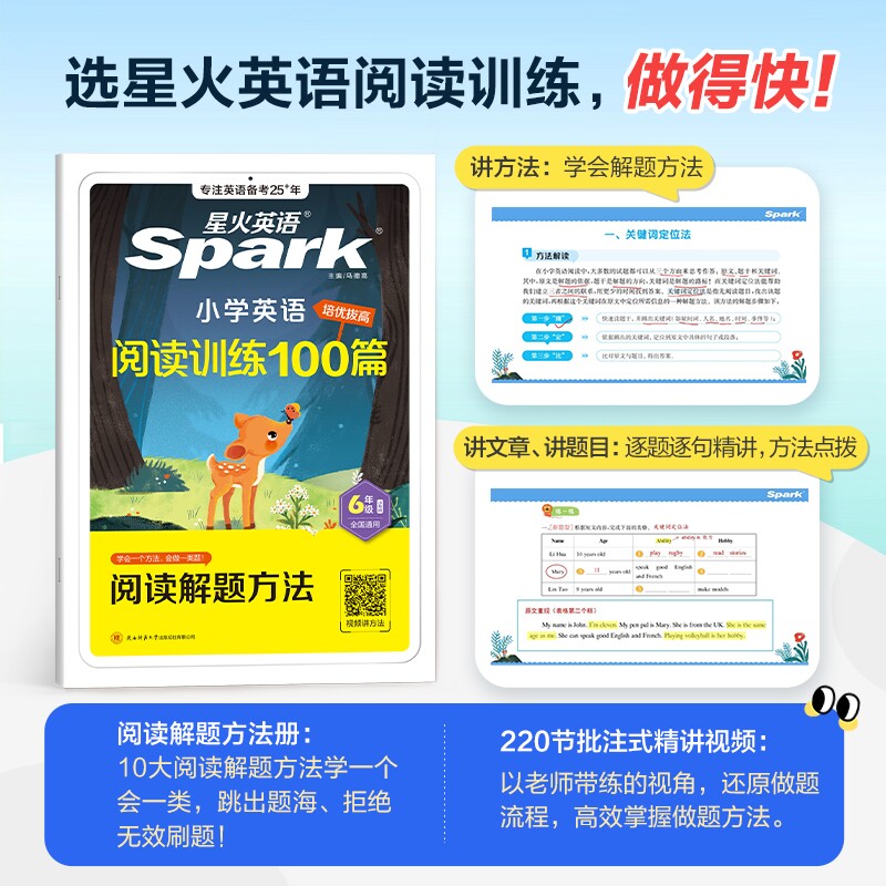 星火英语阅读理解专项训练一百篇小学三四五六年级上下册听力练习册教辅资料每日一练spark官方旗舰课外书100单词汇本小升初语法