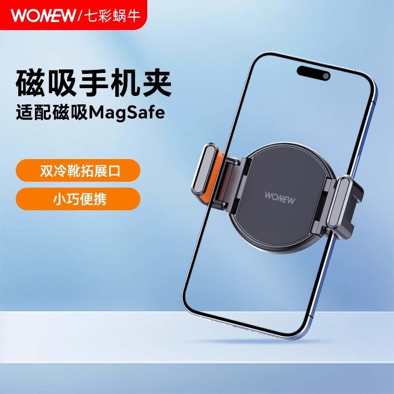 wonew七彩蜗牛磁吸手机夹子配件适配Magsafe磁吸免贴片固定夹汽车车载导航支架自拍手机磁吸神器2025新款