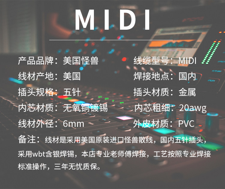 美国怪兽五芯MIDI连接线5针5芯 电子琴连接线电钢琴键盘声卡MIDI