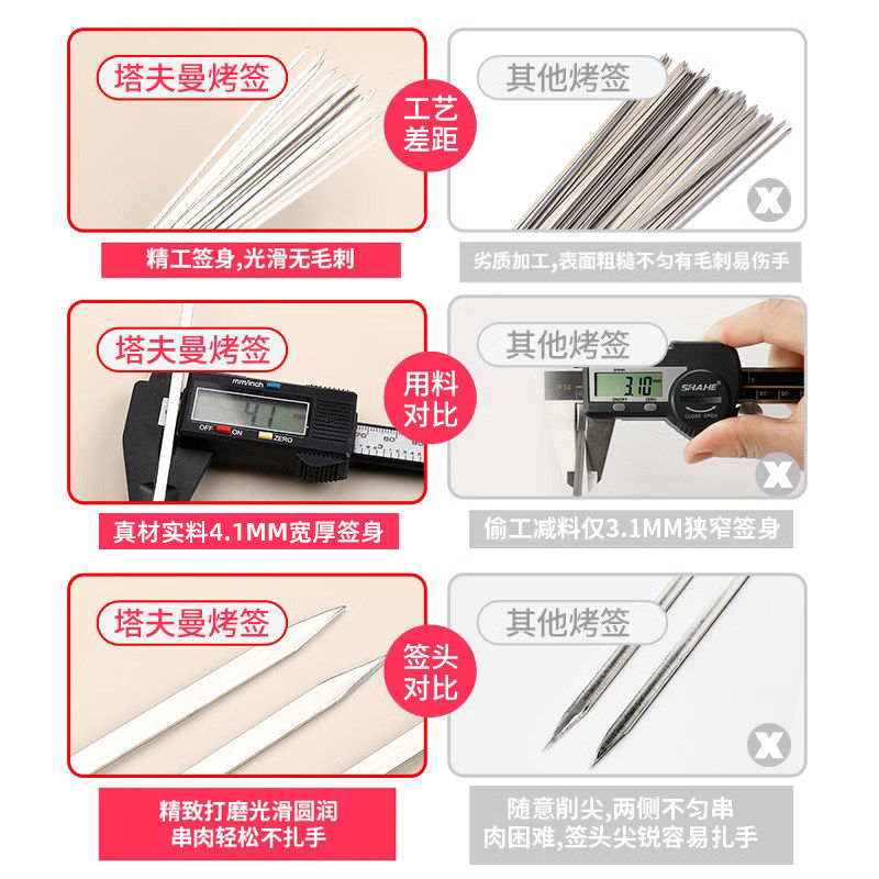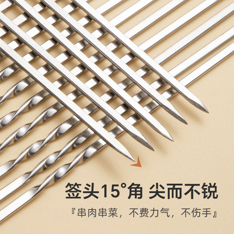 烧烤签子不锈钢食品级羊肉串烤肉铁签户外烤串扁签字工具用品商用