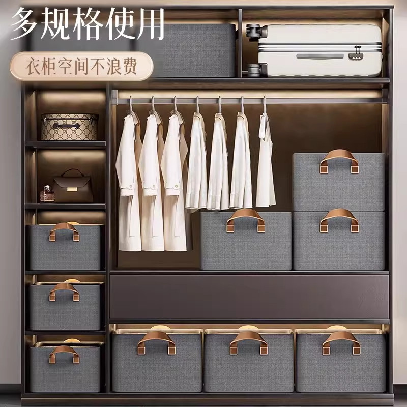 拍1发4衣服收纳筐神器布艺装衣物衣柜分层收纳箱家用框裤子整理盒