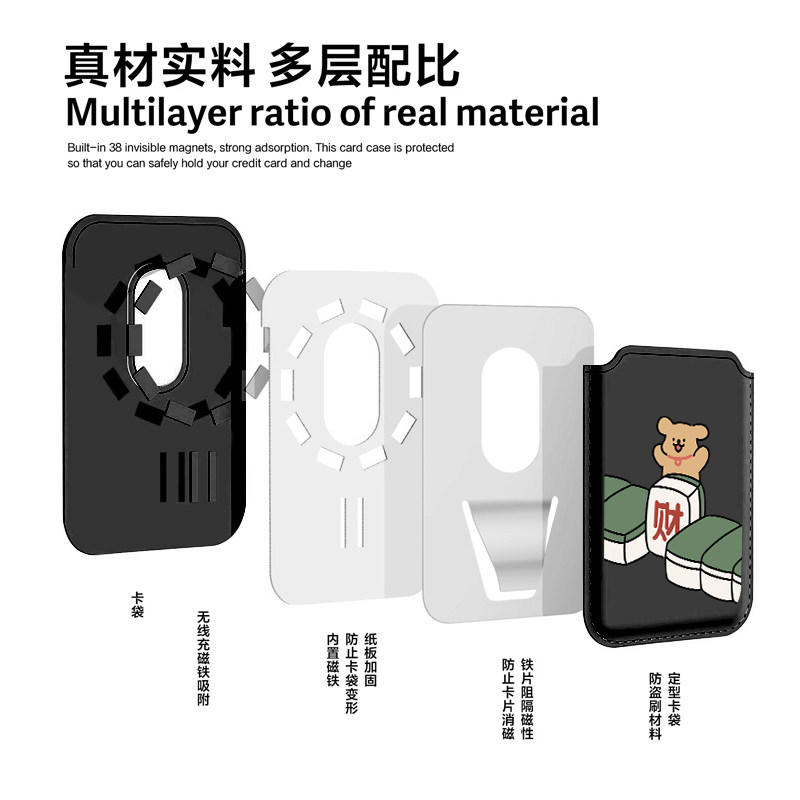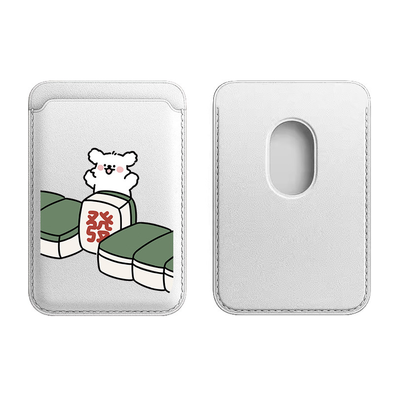 麻将发财小狗适用苹果magSafe磁吸卡包iphone17手机配件16皮质卡套式13mini情侣15plus卡通14promax新款门卡