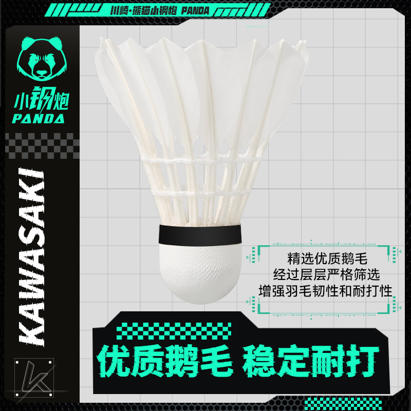 Kawasaki川崎熊猫小钢炮羽毛球专业训练鹅毛球防风耐打飞行稳定