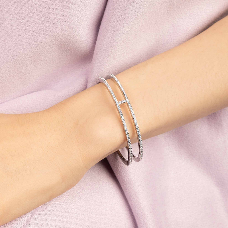 [杨紫同款]APM Monaco银白色双层线条密镶手镯简约送人生日礼物