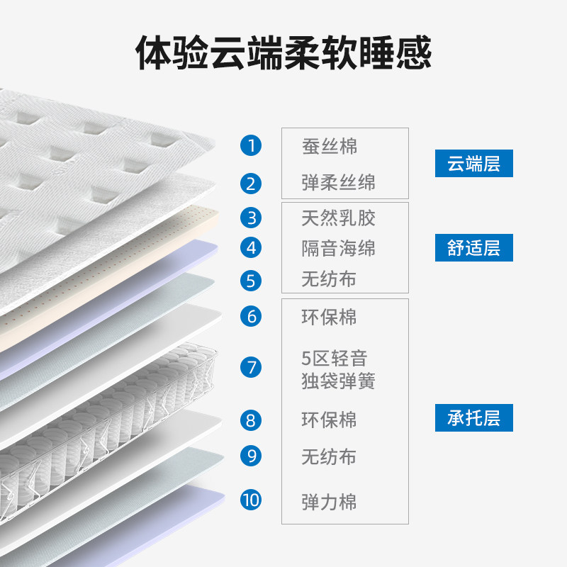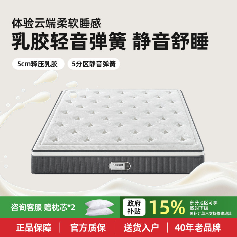 晚安床垫加厚乳胶5分区静音独立弹簧家用软垫蚕丝棉席梦思1.8米