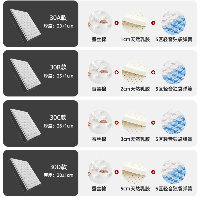 五星酒店记忆棉乳胶独立袋装弹簧30CM厚床垫家用卧室超软席梦思