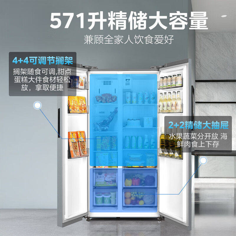 Midea/美的 BCD-571WKPM(E)双开门冷无无霜钛钢灰-星烁 对开冰箱