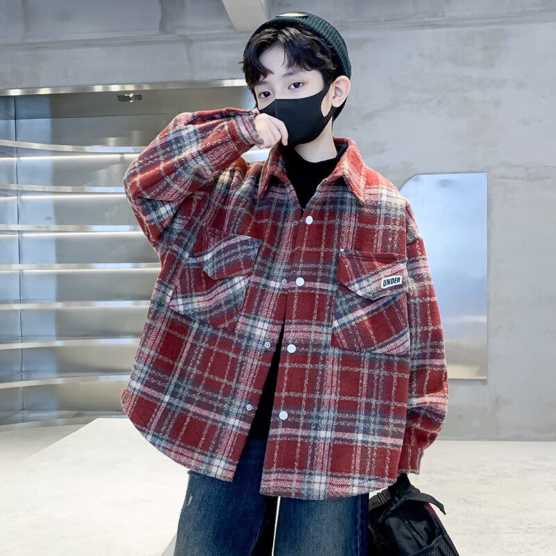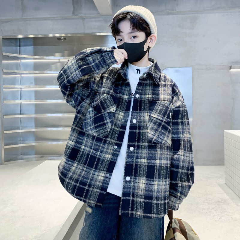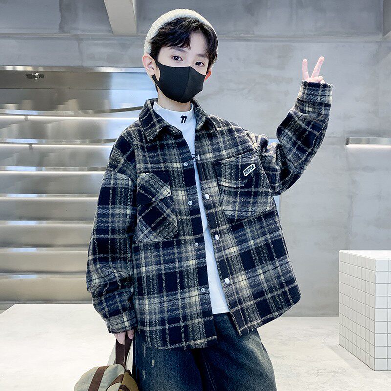 儿童装男童加绒外套2026新款加厚衬衫秋冬款中大童衬衣冬季男孩潮