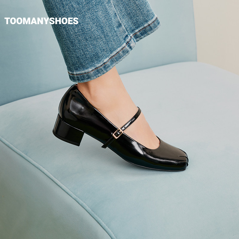 Toomanyshoes女鞋新款舞会开场粗跟法式优雅玛丽珍鞋