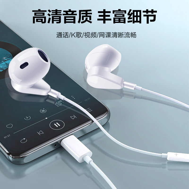 官方正品耳机有线入耳式typec接口高音质带麦k歌手机平板通用圆头