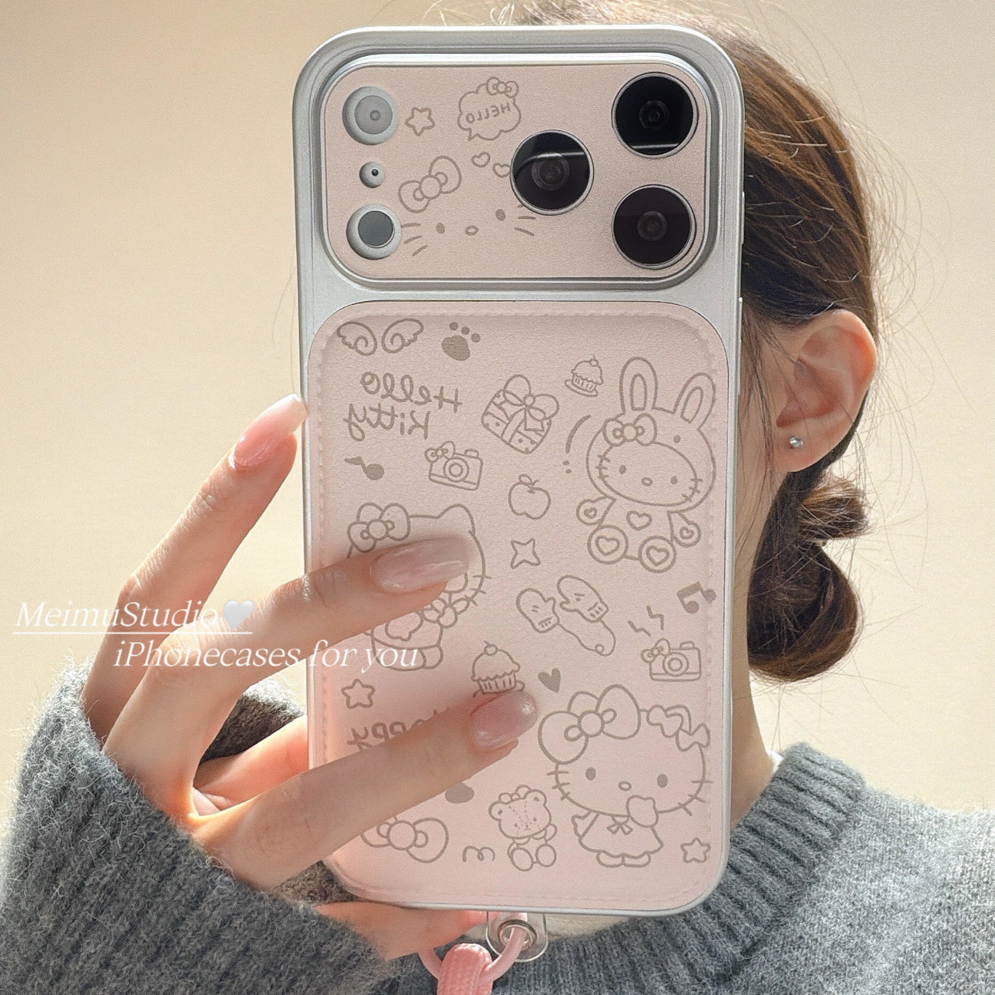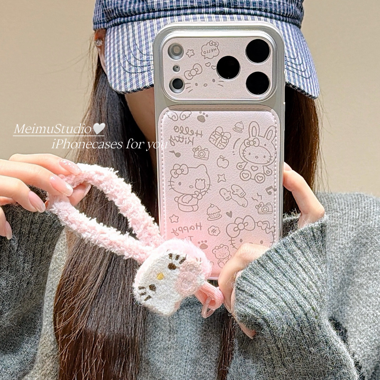 美牧少女心粉色线条卡通适用苹果17pro手机壳iphone16promax新款15带挂绳17可爱14pm甜美15pro电镀16全包皮质