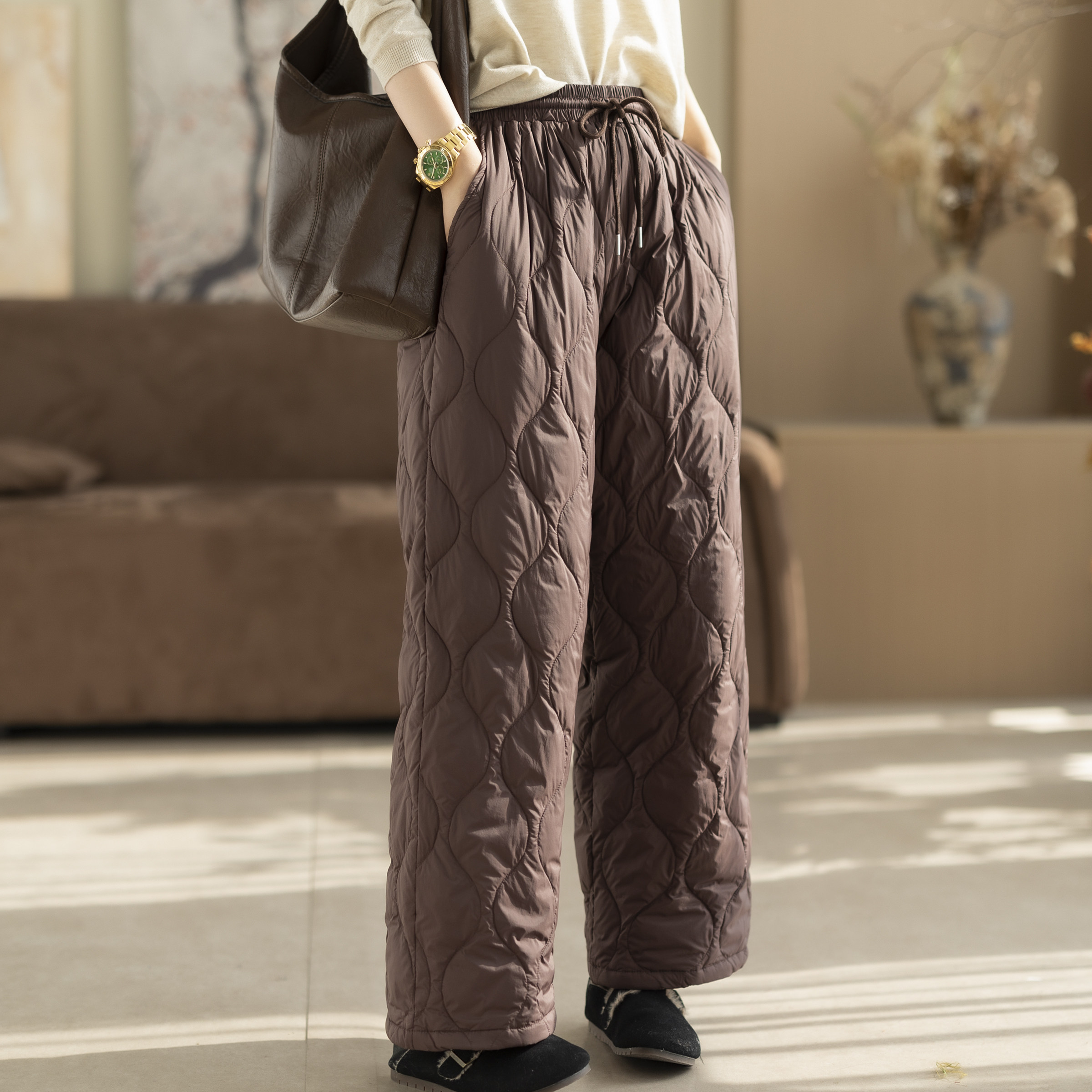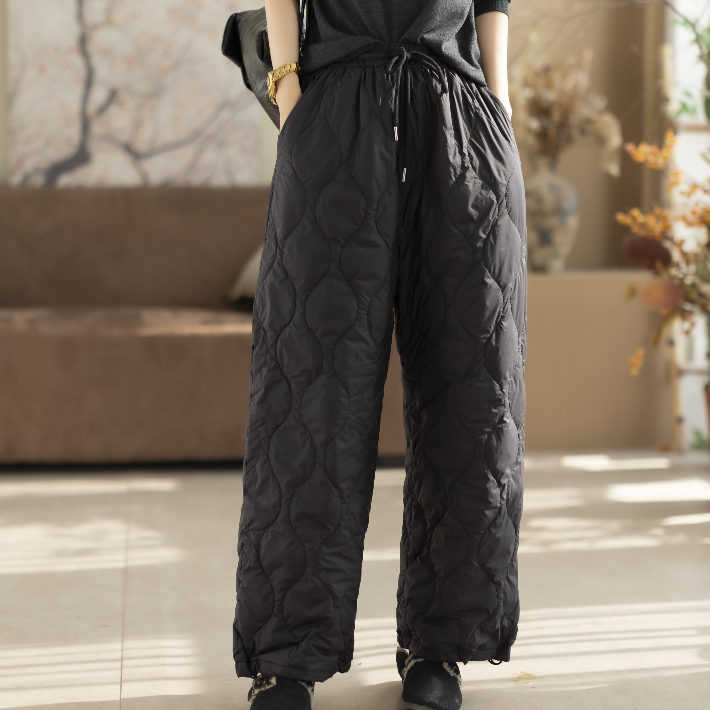咖咪羽冬季新款文艺复古宽松90白鸭绒萝卜裤保暖系带羽绒休闲裤