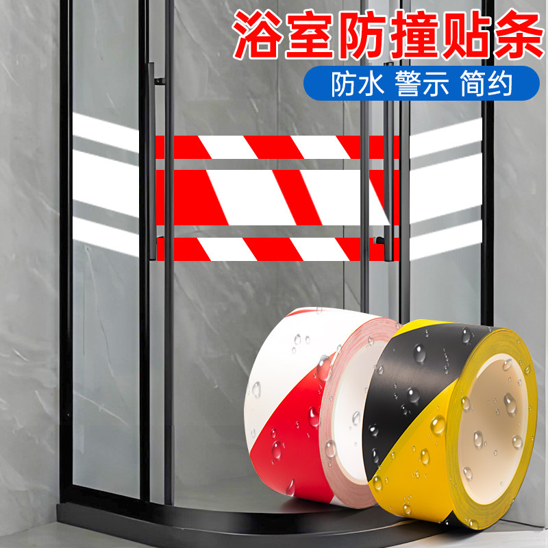 门店玻璃门防撞腰线贴落地窗户推拉门办公室彩色自粘装饰防水防晒注意安全警示标识贴纸车间划线地标线胶带