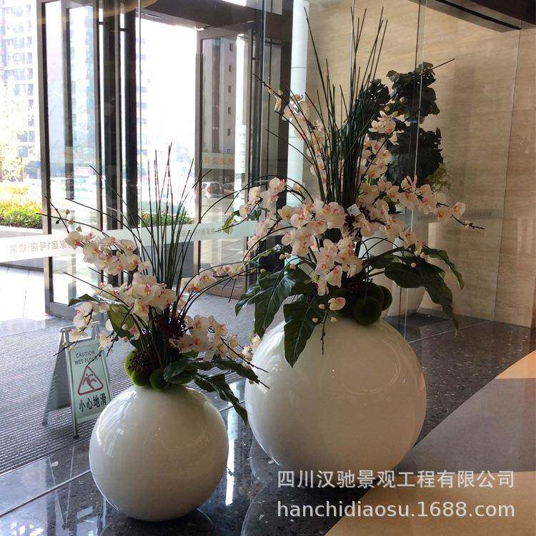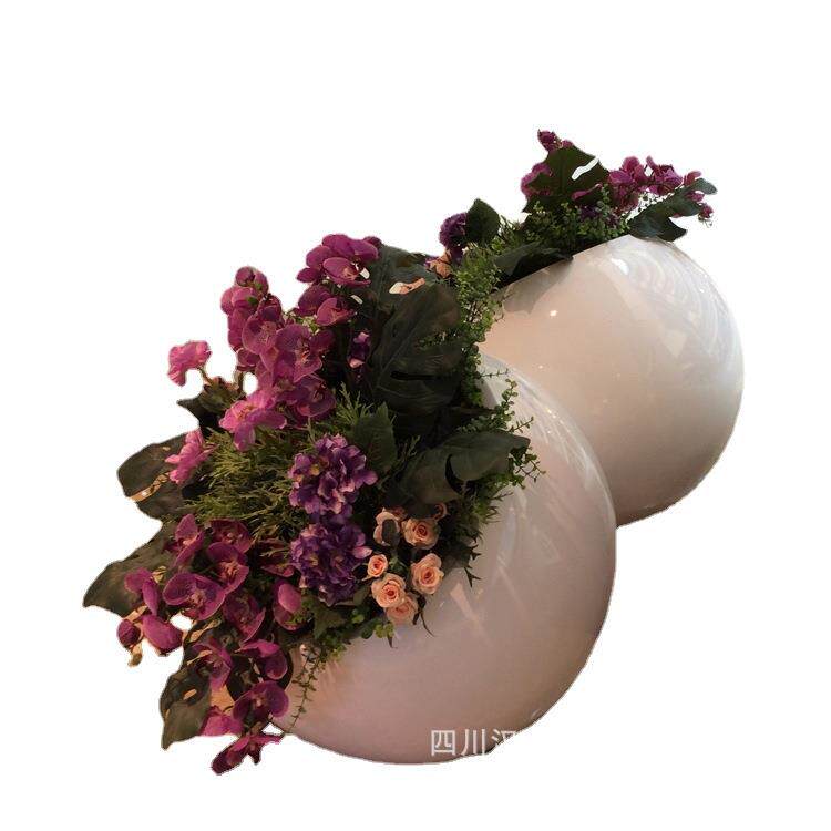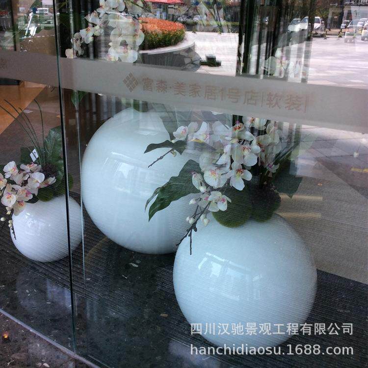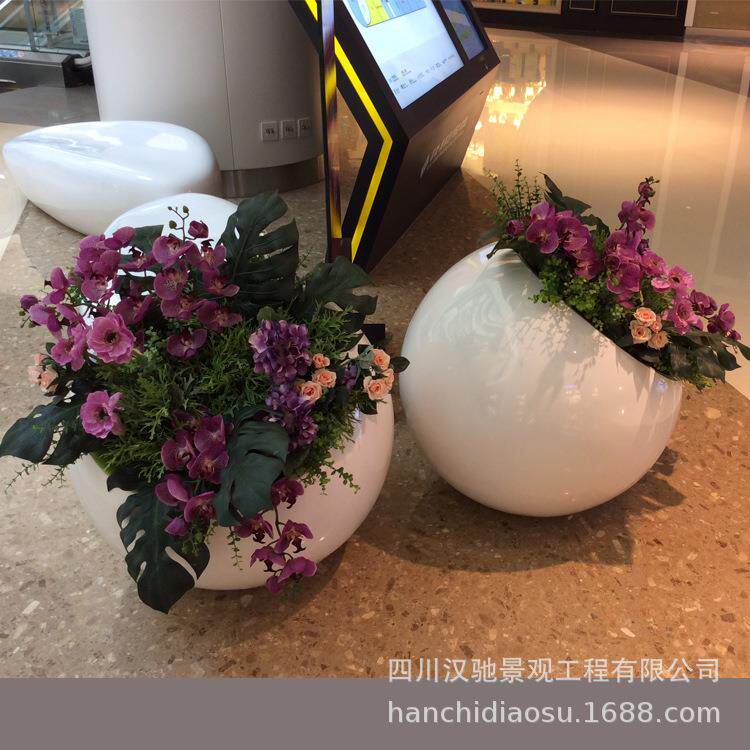 玻璃钢落地小花盆商场美陈装饰创意鸡蛋花器户外圆形组合花钵摆件