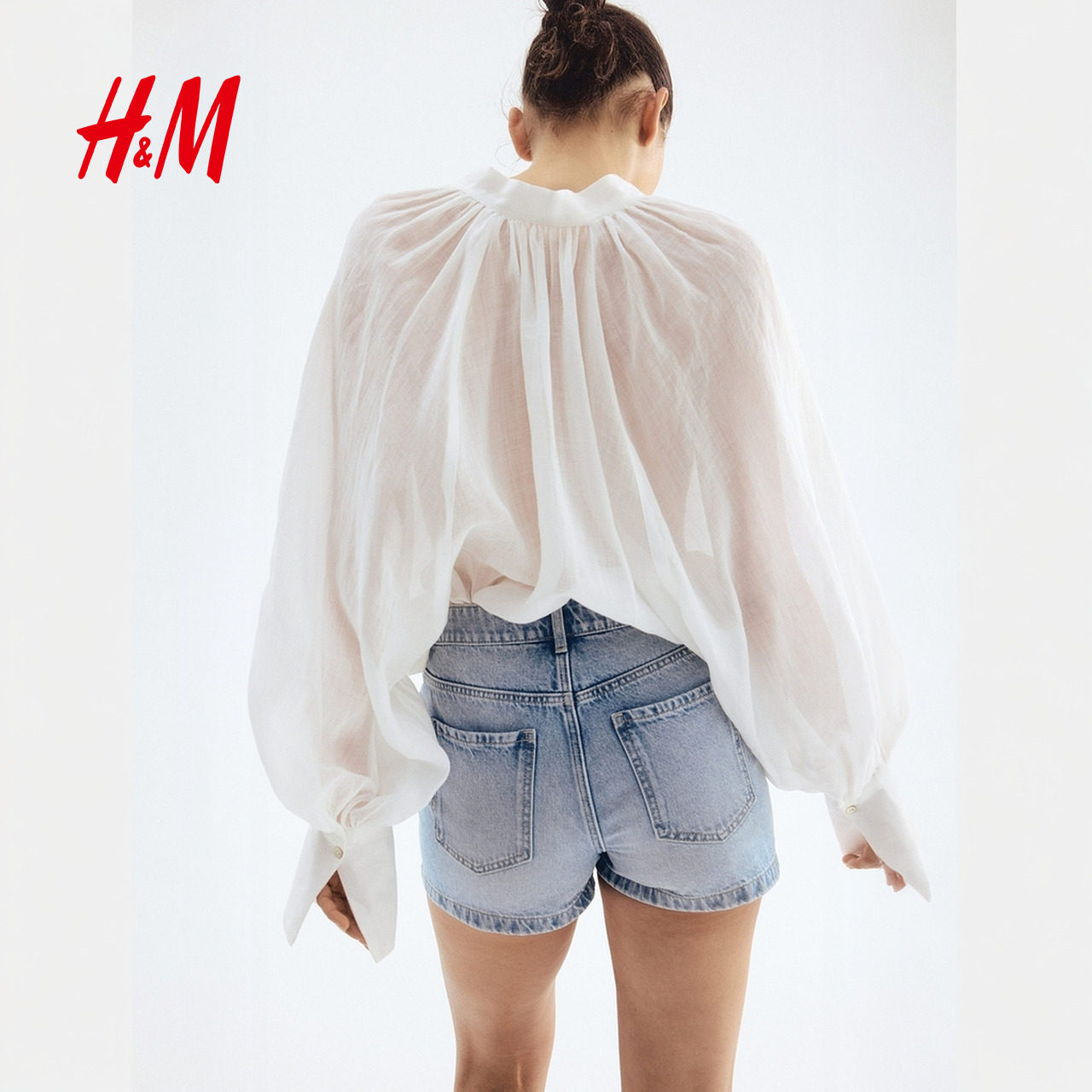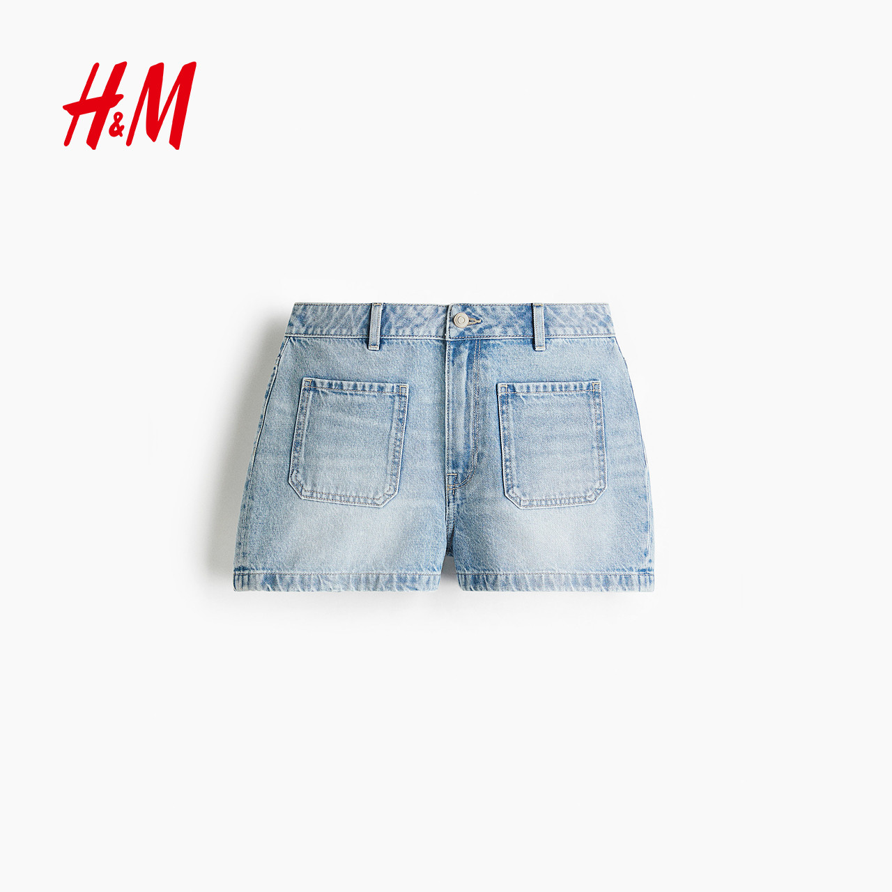 HM女装牛仔裤春季直筒修身时尚高腰休闲辣妹短裤1285168
