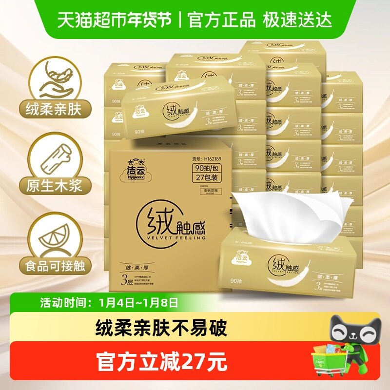 【下拉详情领优惠】洁云抽纸绒触感抽纸3层整箱s码纸巾面巾纸