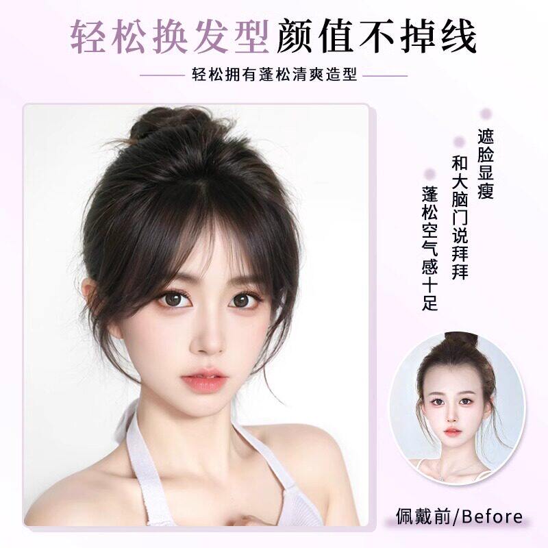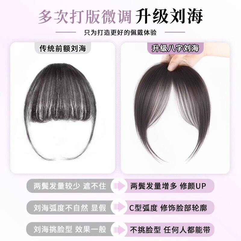 刘海假发女片头顶自然前额真发八字空气刘海无痕轻薄款法式假刘海